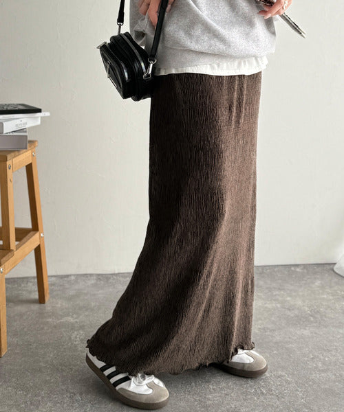 小物をアクセントにして楽しめる大人カジュアルなスカートです。