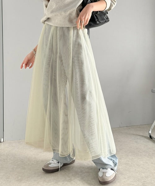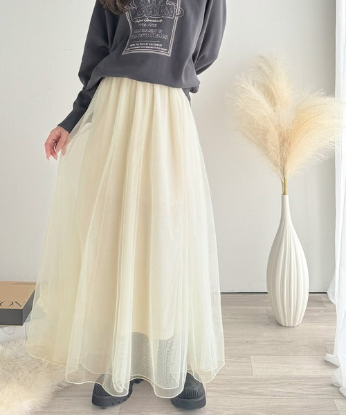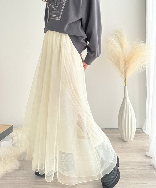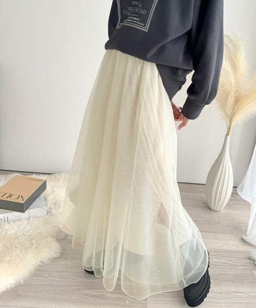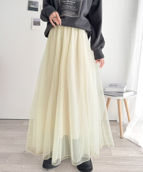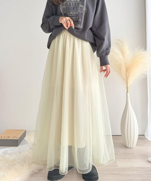 ダブルチュールでボリュームたっぷりの表情豊かなチュールスカート。