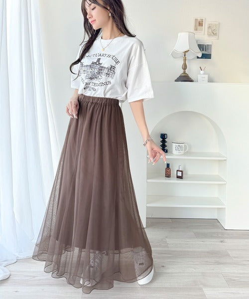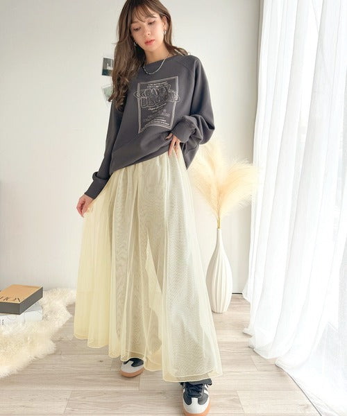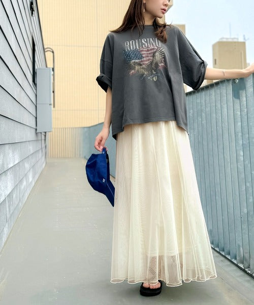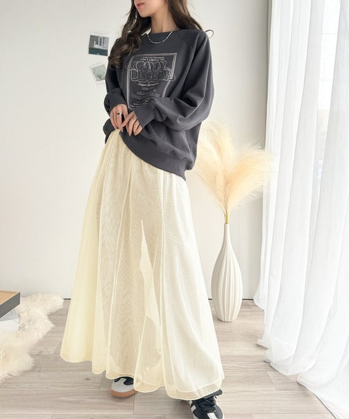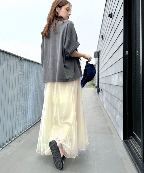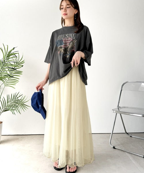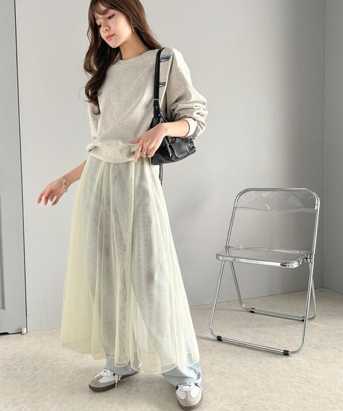 合わせるスタイルがおすすめ!リラックス感を演出しながら、マーメイドチュールスカートとのバランスが抜群です。