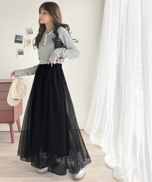 優雅さ際立つ主役級。大人のマーメイドダブルチュールスカート(ロング丈) ce1260326