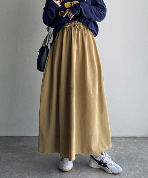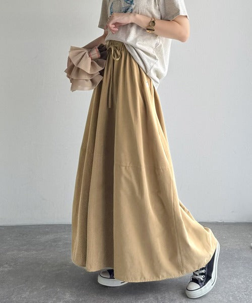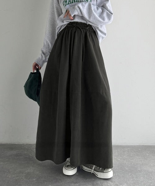 《JaVaジャバコラボ》ふんわりフォルムが可愛い◎ピーチ起毛素材コクーンシルエットロングスカート jv0940247