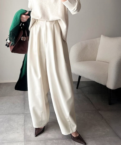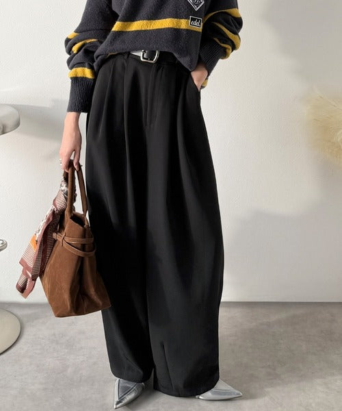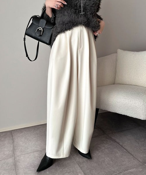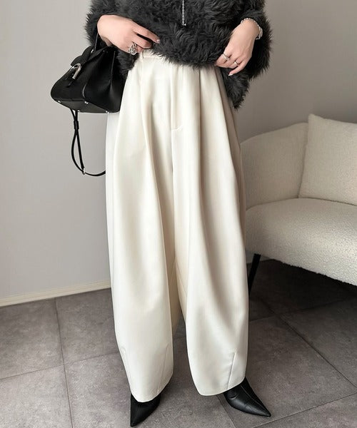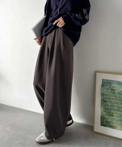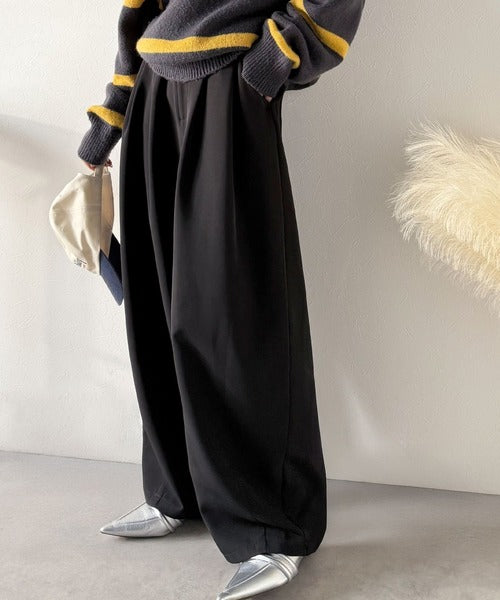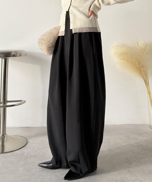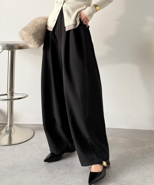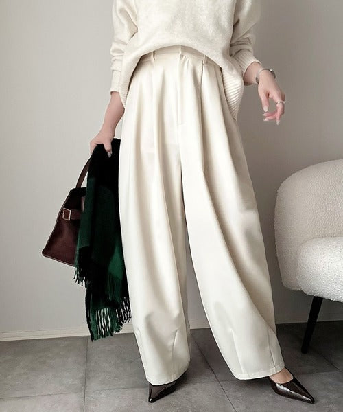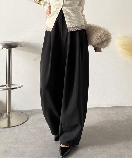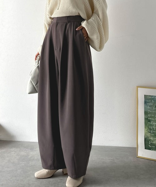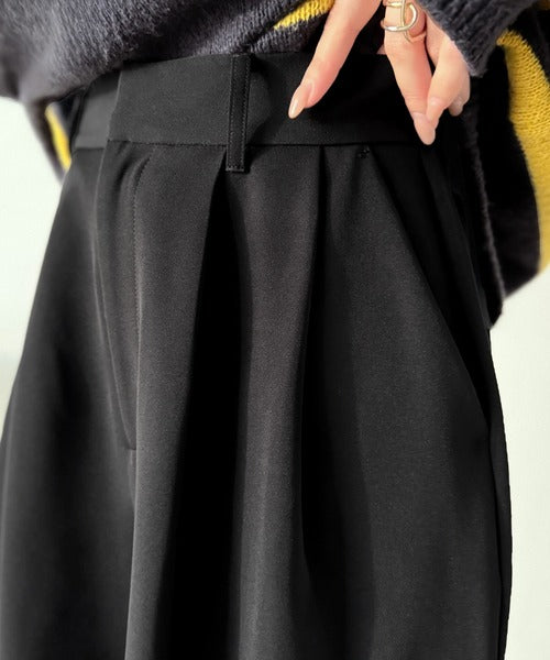 【防シワ、ウォッシャブル機能付き】1年中使えて、ONもOFFも主役級。高機能タックワイドカーブシルエットスラックスパンツ ce0940253