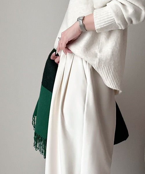 ニットやカーディガンを合わせたきれめスタイルにはもちろん、