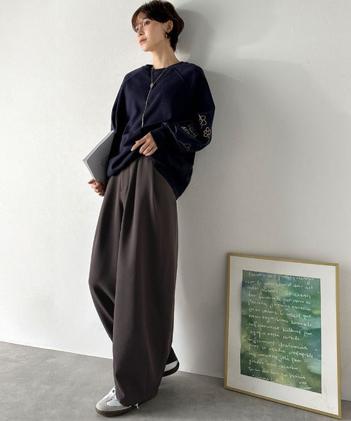 シャツやブラウスできれいめに、ロゴTやスウェットで抜け感を出してもサマになる“最旬スラックス”です。