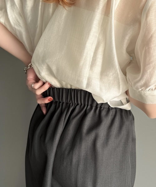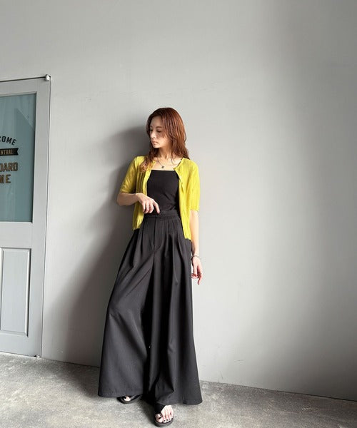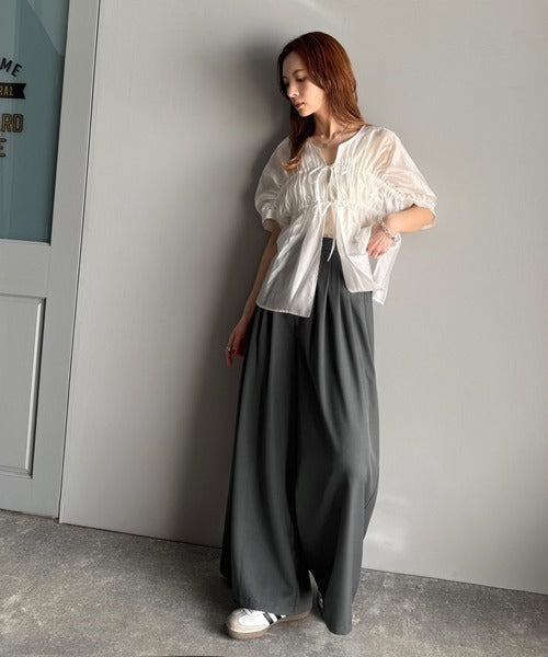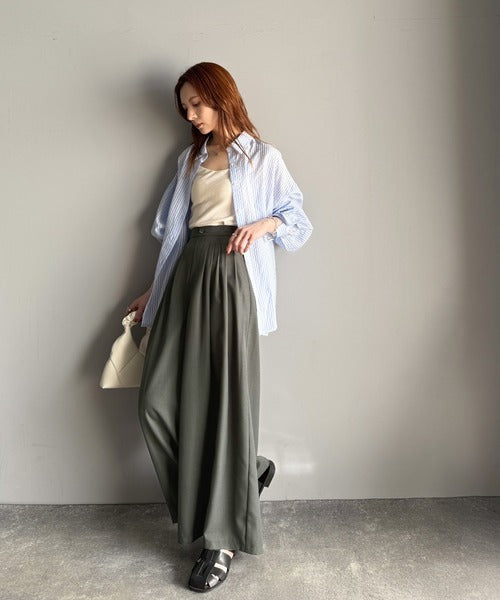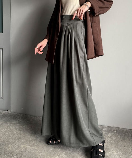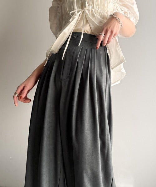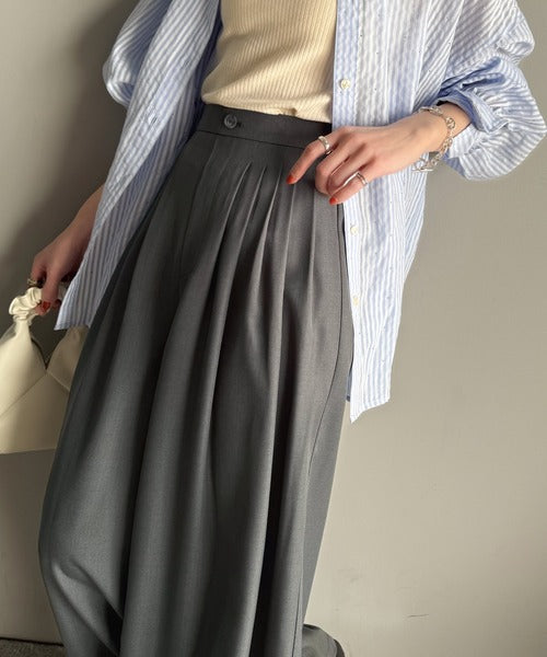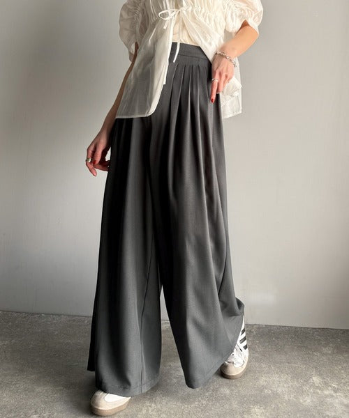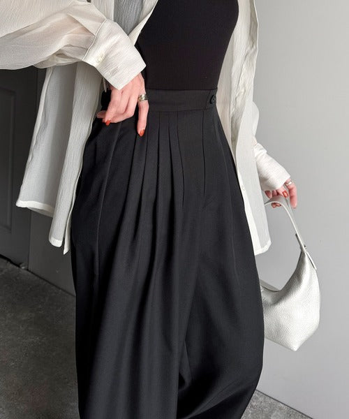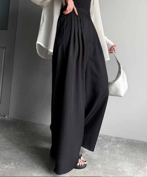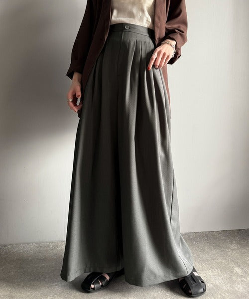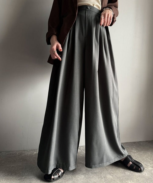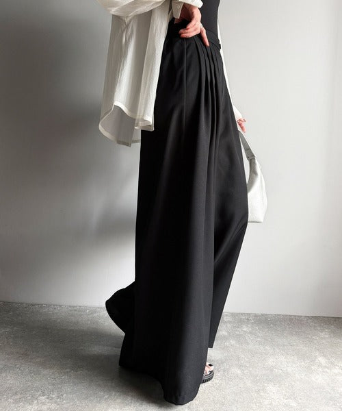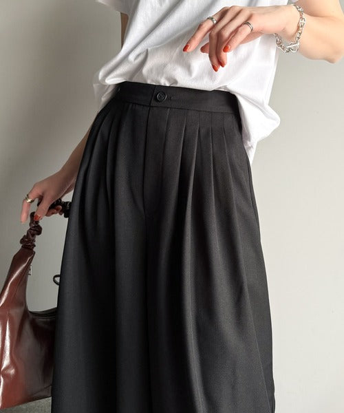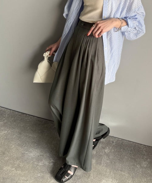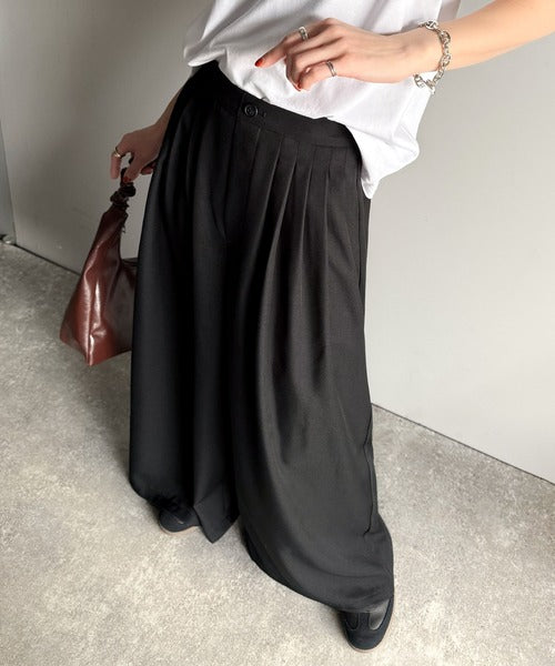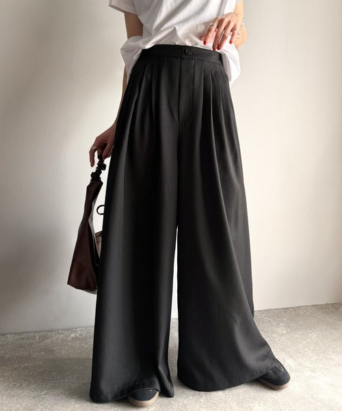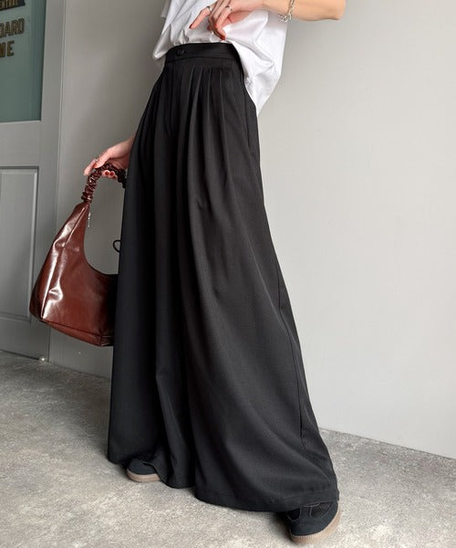 5タックデザインのワイドパンツ。どんな体型にもマッチし、着回し自在。
