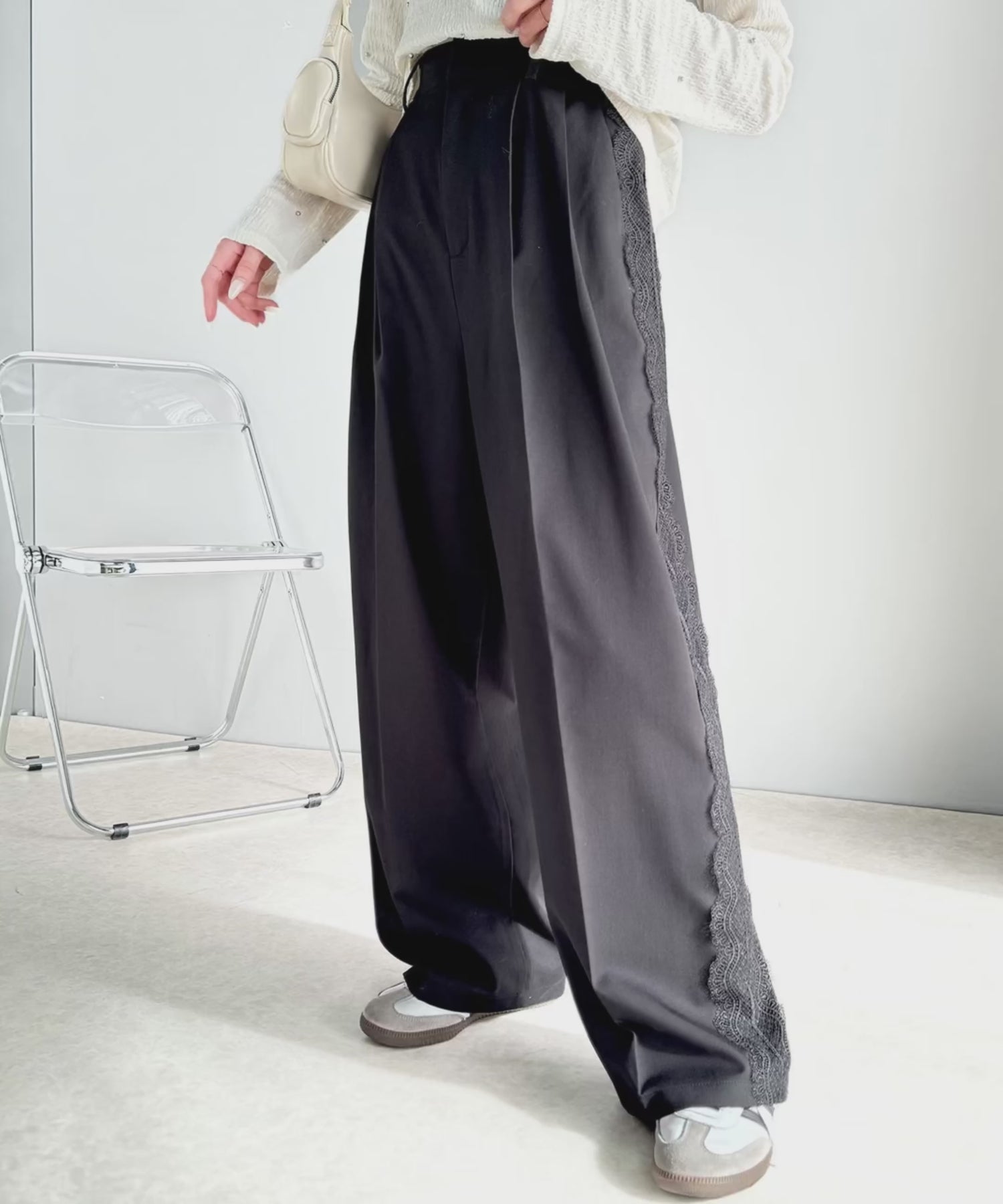 ワイドなシルエットが特徴的なこのスラックスは、
