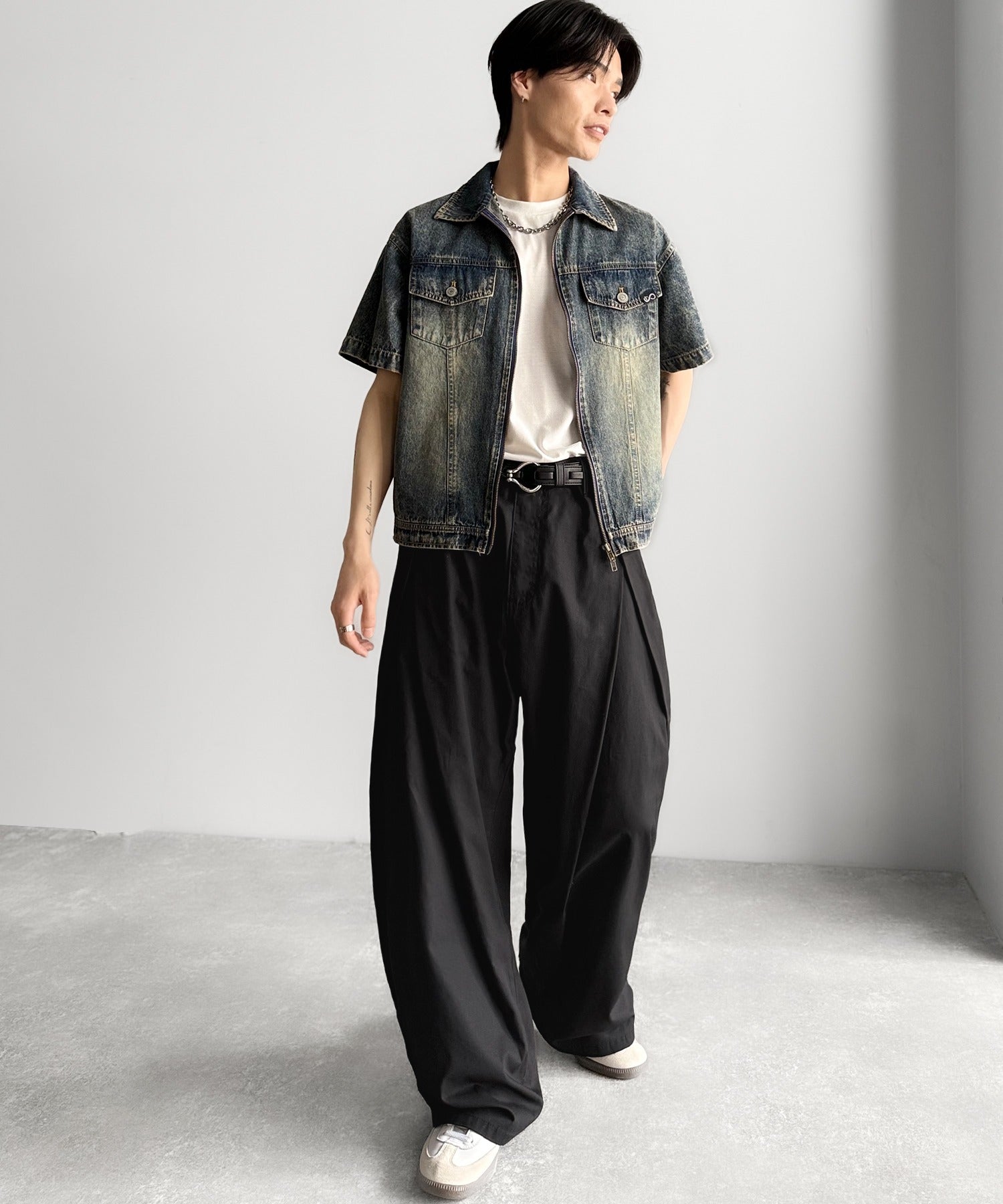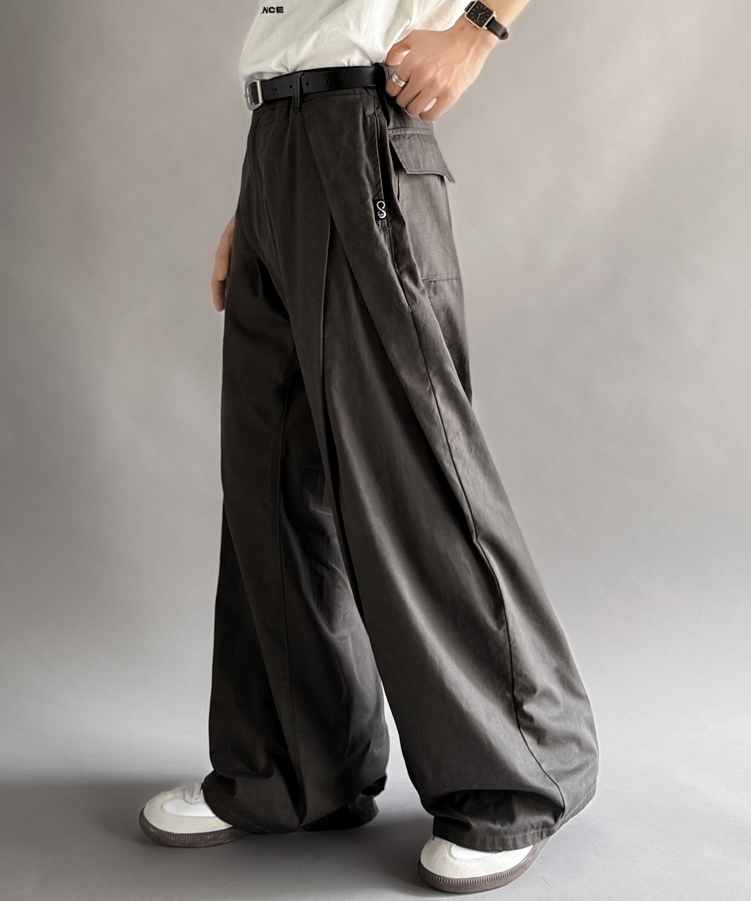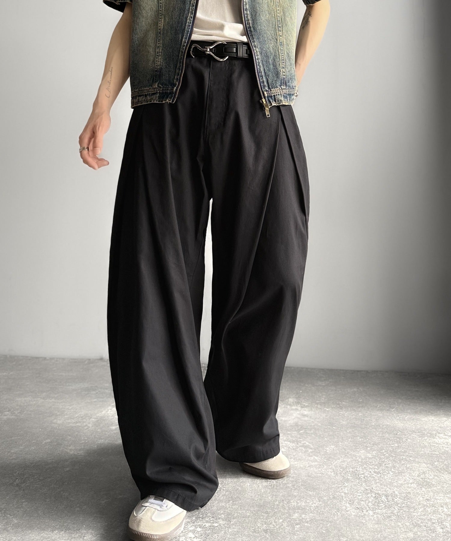 《Haruto×クラシカルエルフコラボ》「トレンド最前線。」綿100%ダブルタックデザインバックポケットワイドスラックス/Double Tuck Design Back Pocket Wide Slacks co1010015