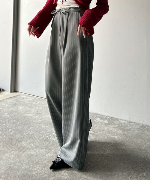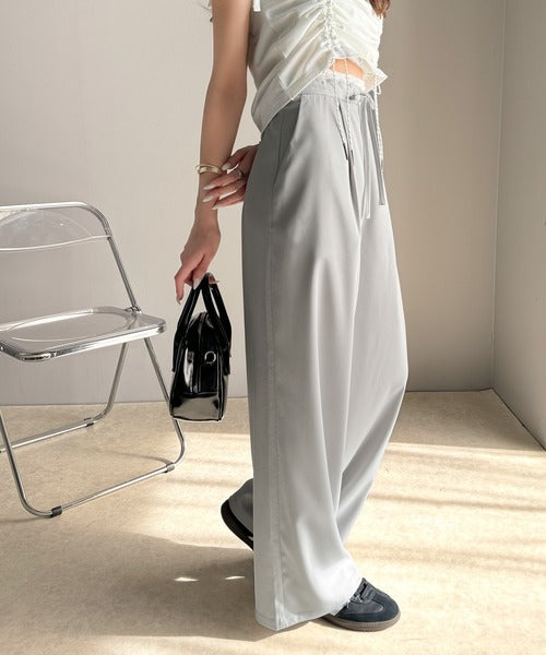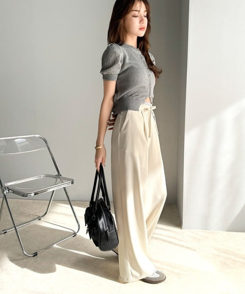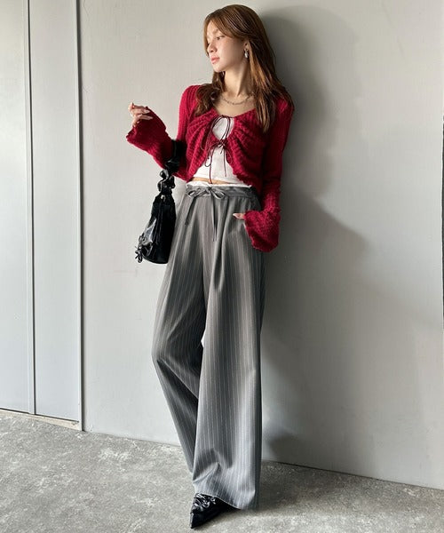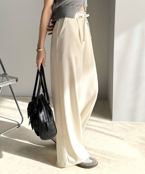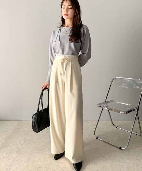 ウエストのリボン紐で締めてくれるため、好みのフィット感で着こなすことができますし、