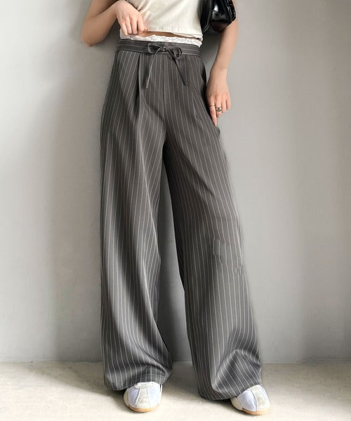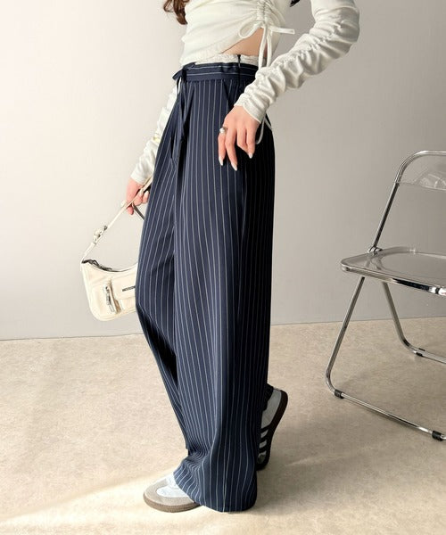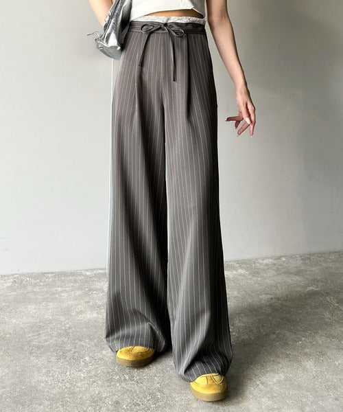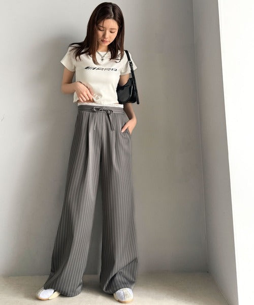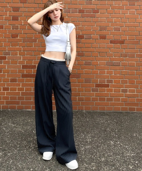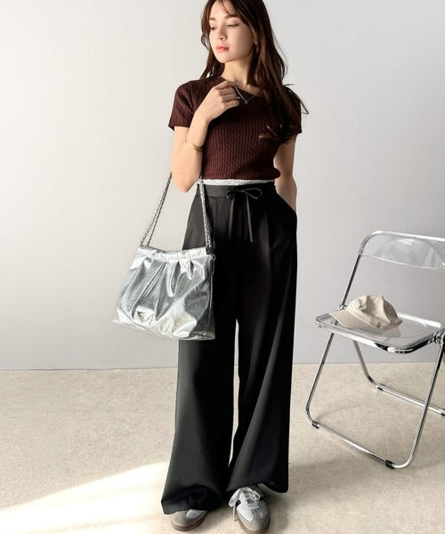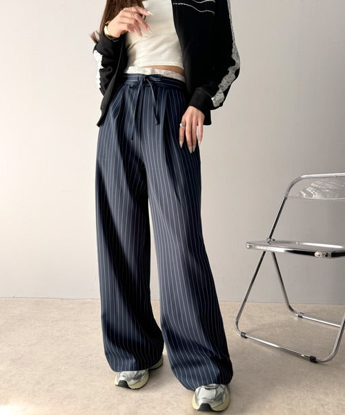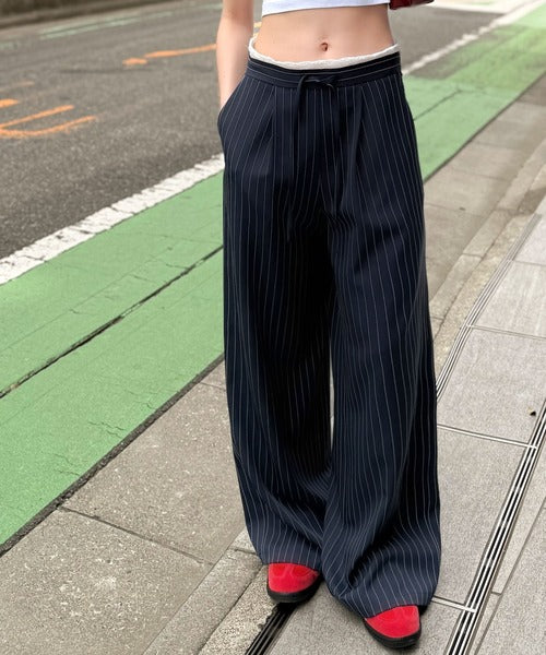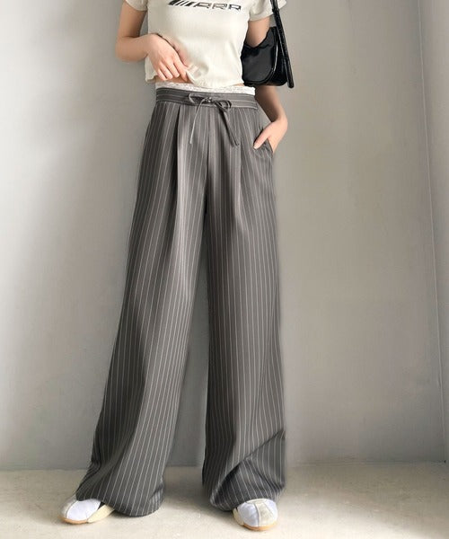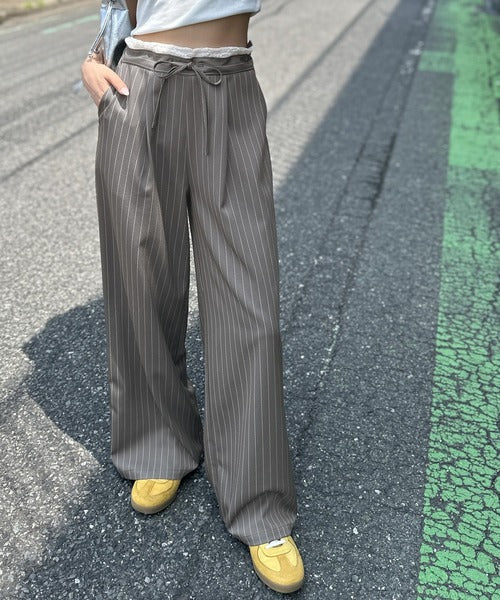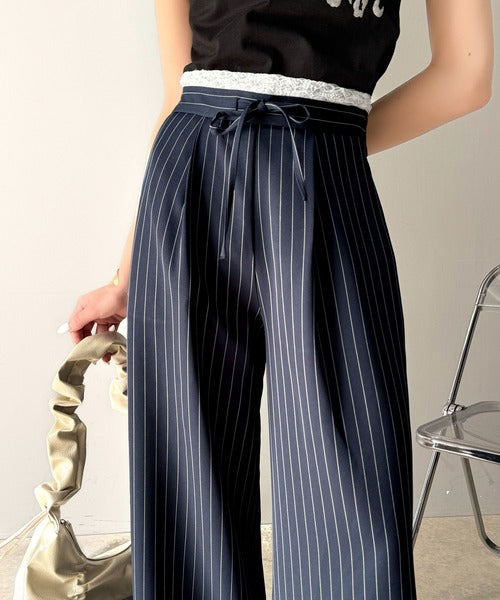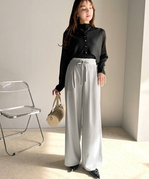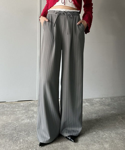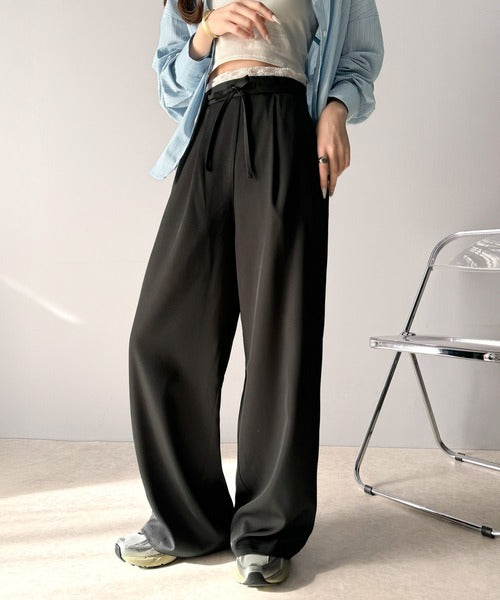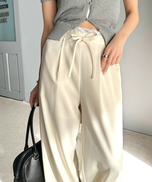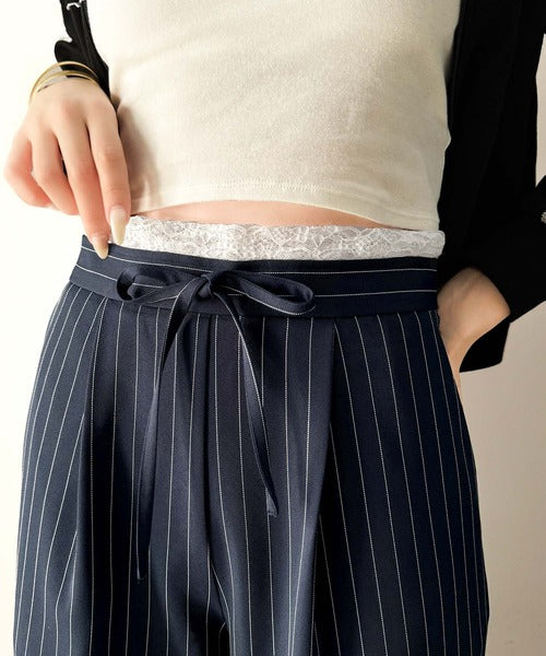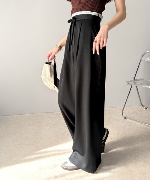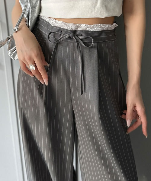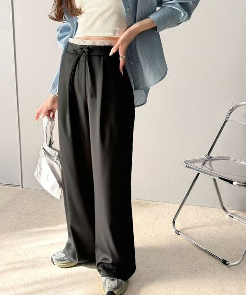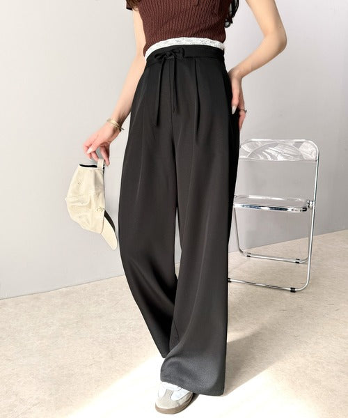 【mily bilet】新感覚デザイン。レース使いダブルウエストワイドスラックスパンツ mi1329021