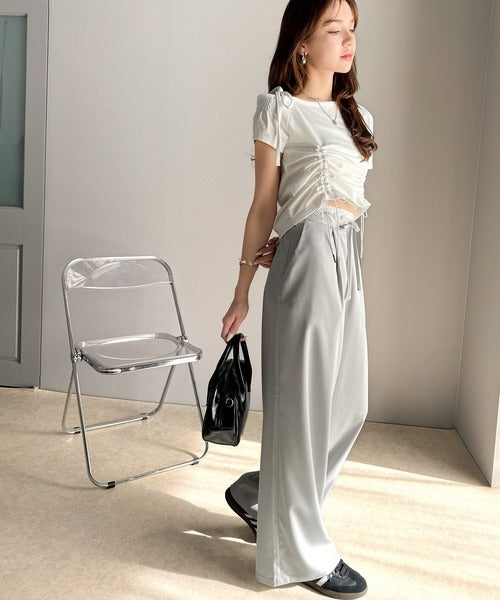 ・タック入りで腰回りすっきり見え