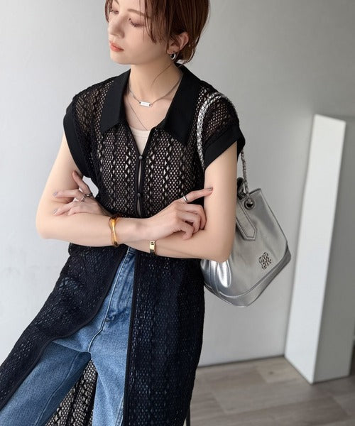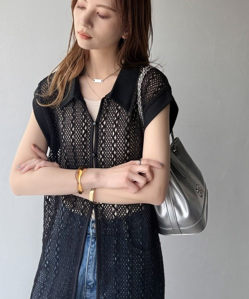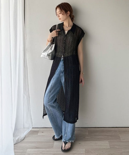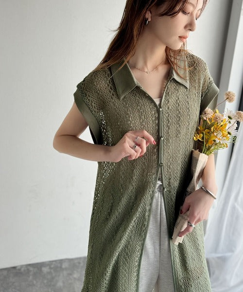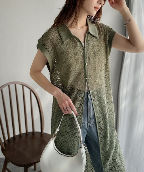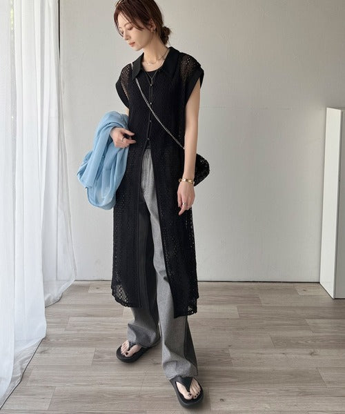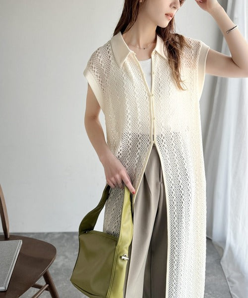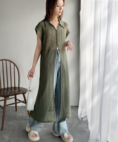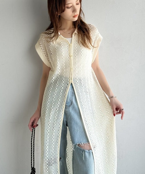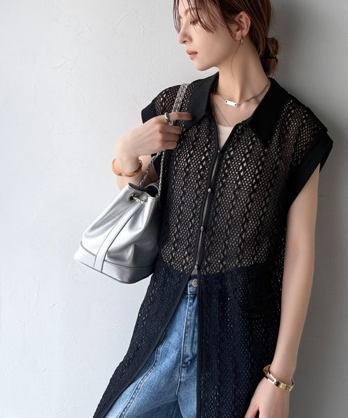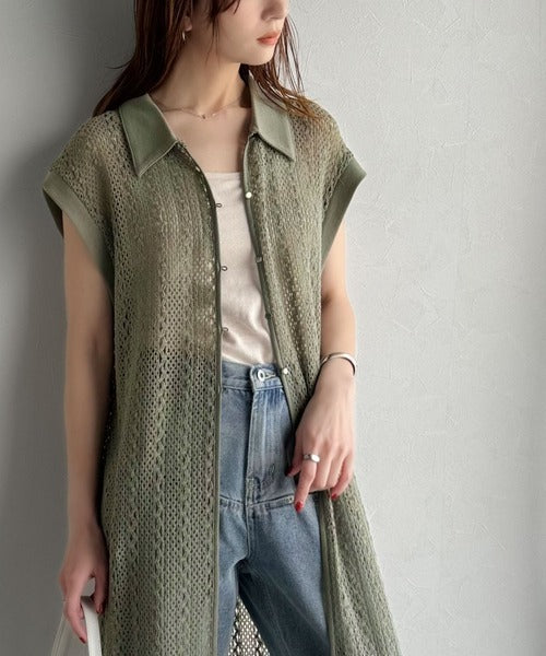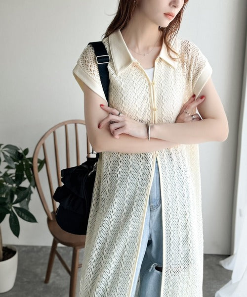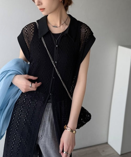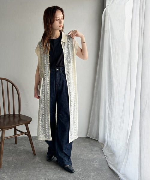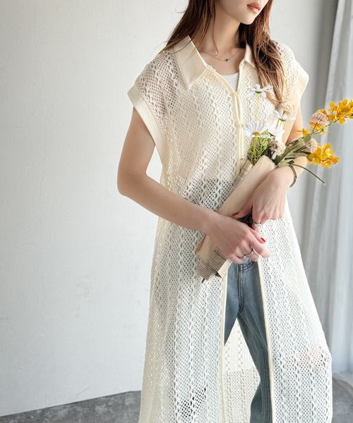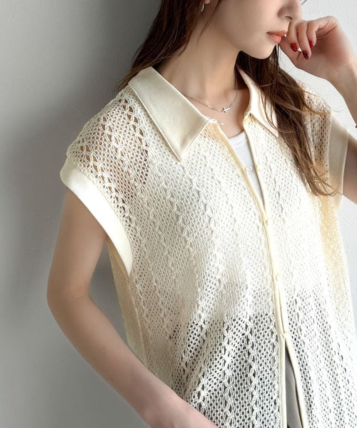 トレンド感たっぷりの魅力を纏う。襟付きクロシェ風レースジレ ce1010438