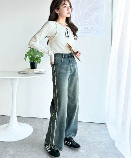 ボトムはダメージデニムパンツと合わせて、