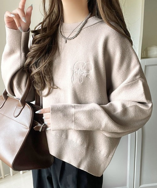 スウェットライクで”魅せる”大人のリラクシーな1枚。胸元サインロゴ刺繍入りニット ce1260482