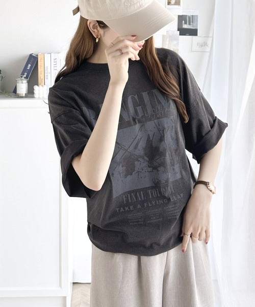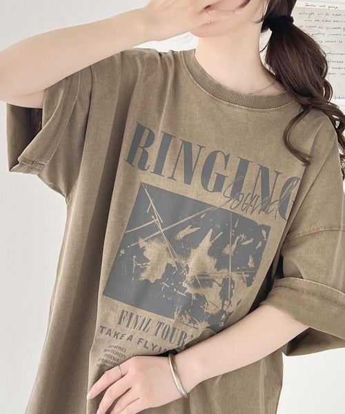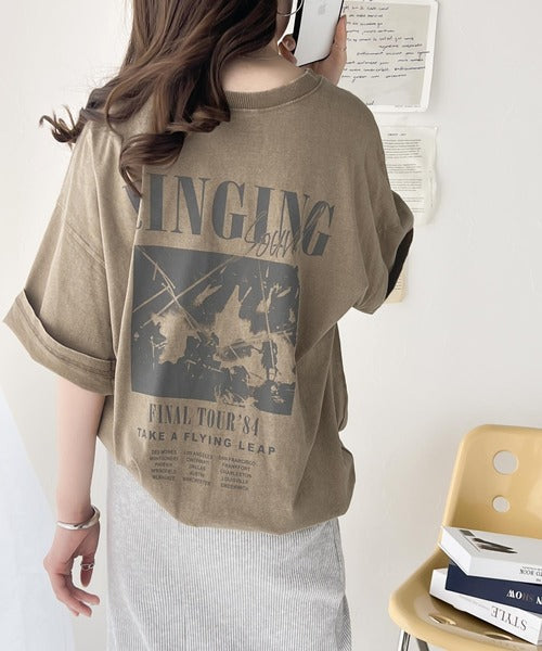 インパクトのあるプリントが魅力。綿100% 前後2wayアシッドウォッシュ 大人のロックバンドT ce1260145
