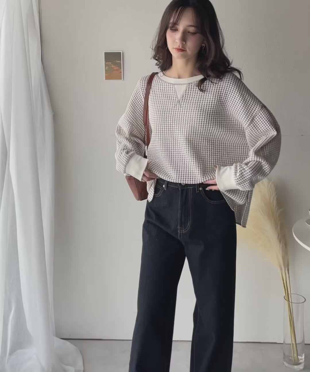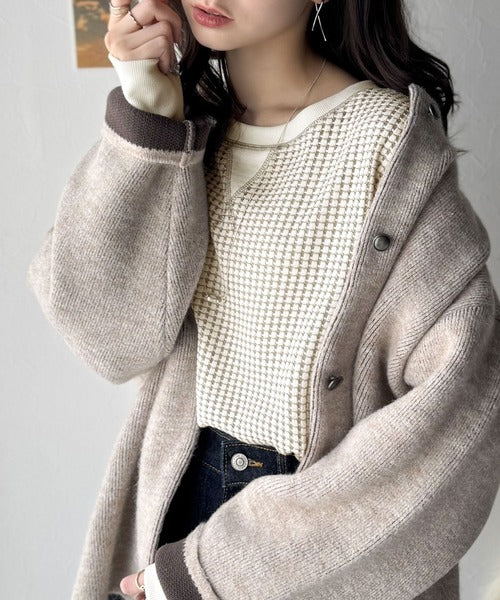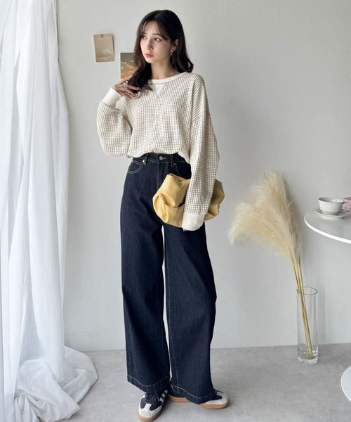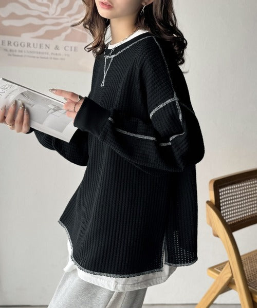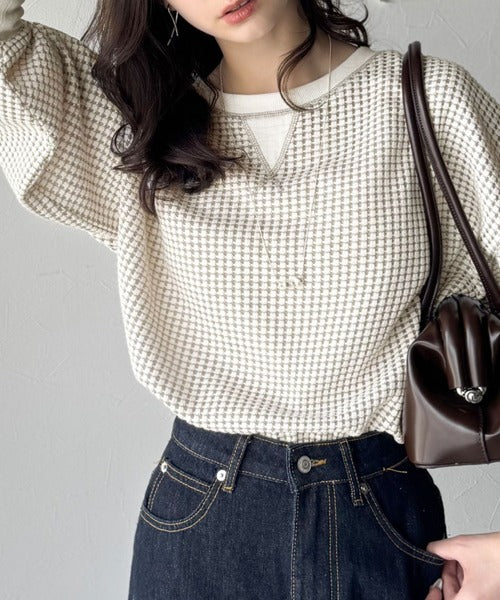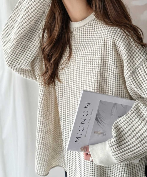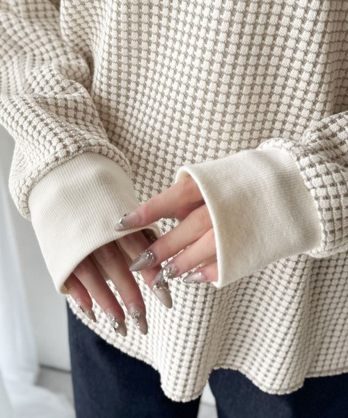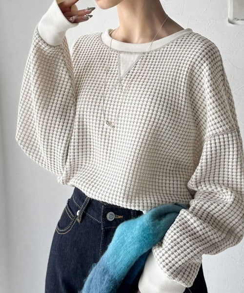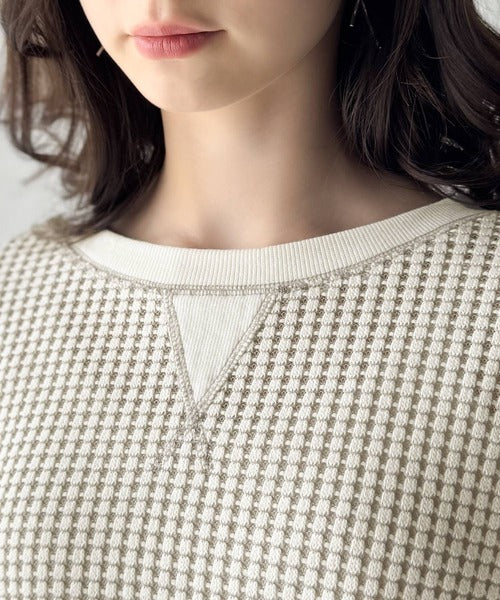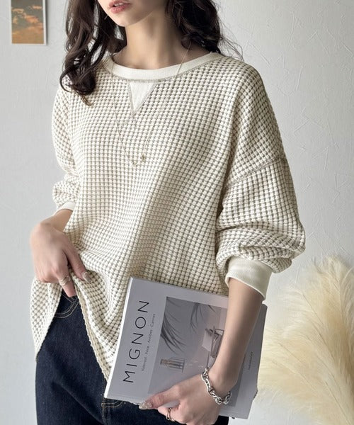 ワッフル編みが心地よい、こなれ感たっぷりのカットソー。