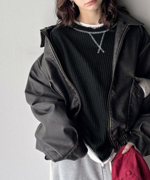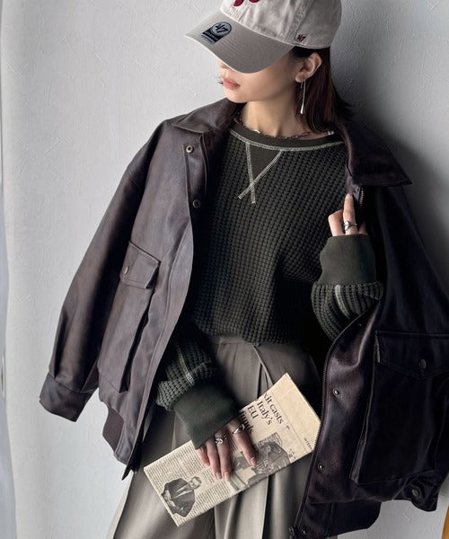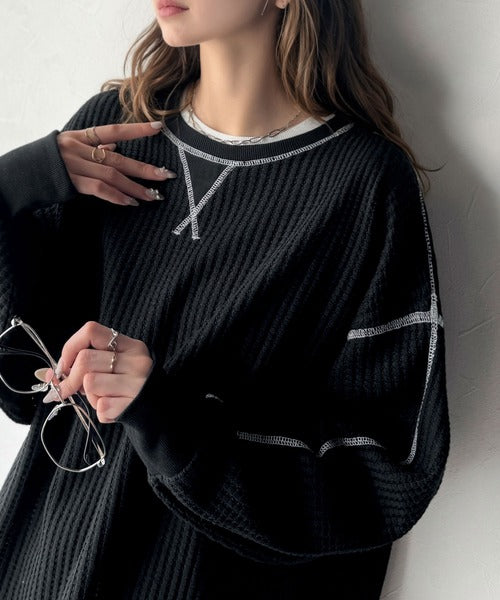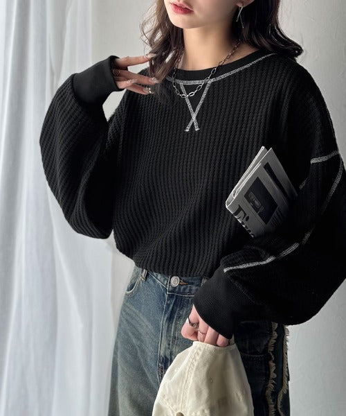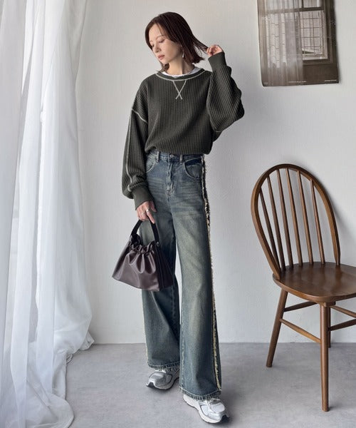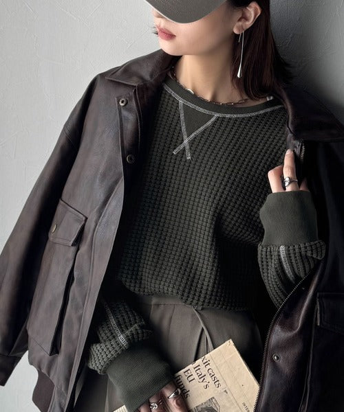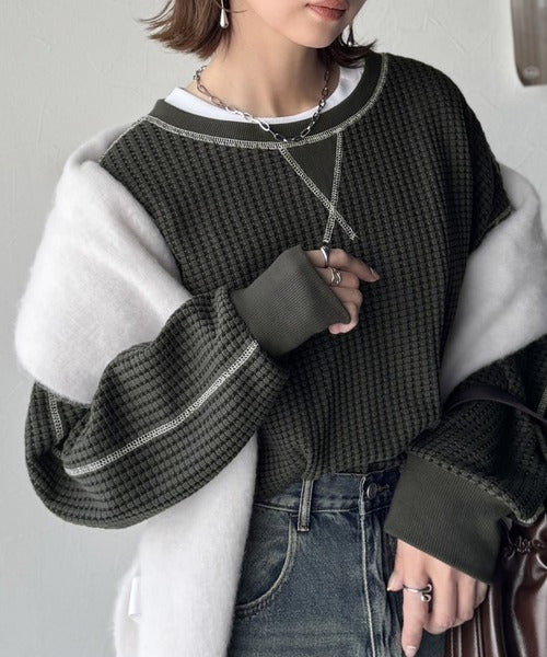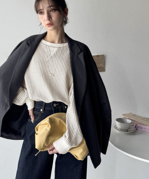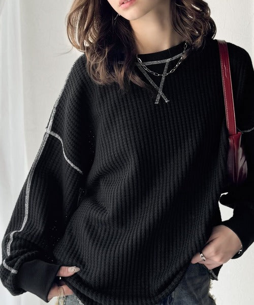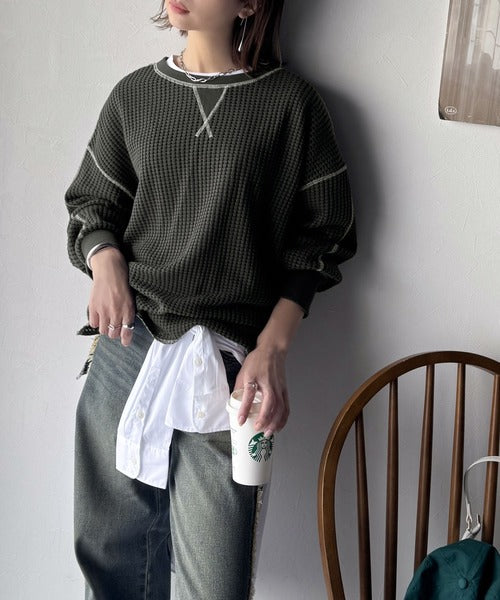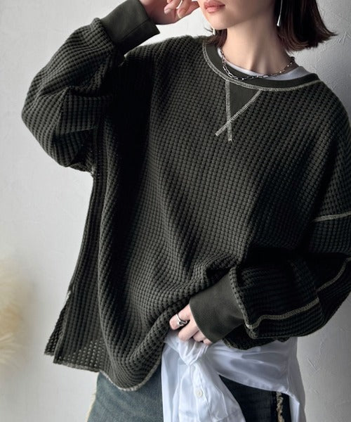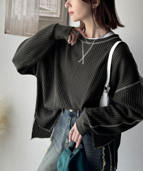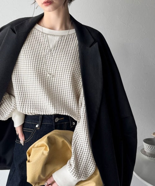 凸凹のぽこぽこした素材感が魅力的で存在感抜群なヘビーワッフルトップス。