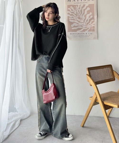 カーブデニムやスウェットパンツなど様々なシルエットのボトムスとの相性も抜群♪