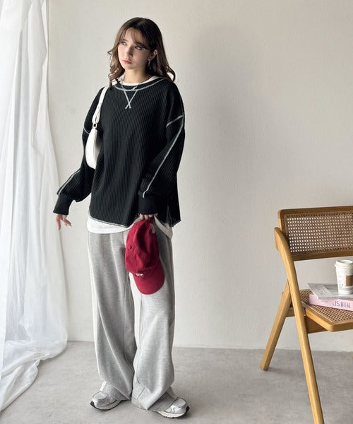 毎日着たい「ラクかわいい」トレンド素材で着映え確定♪配色ステッチロンTEE(長袖) ce1260454