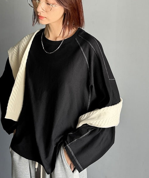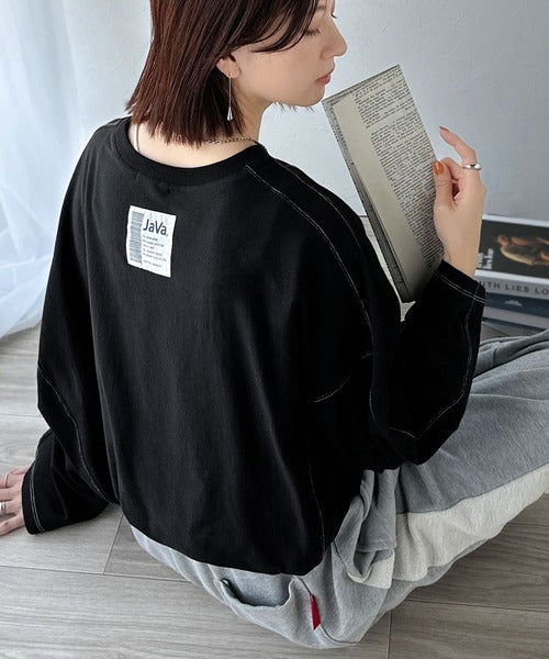《JaVaジャバコラボ》ゆるっと大人カジュアル。綿100%ドルマンスリーブカットロンTEE(長袖) jv1260489