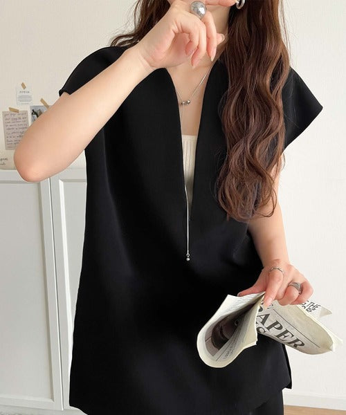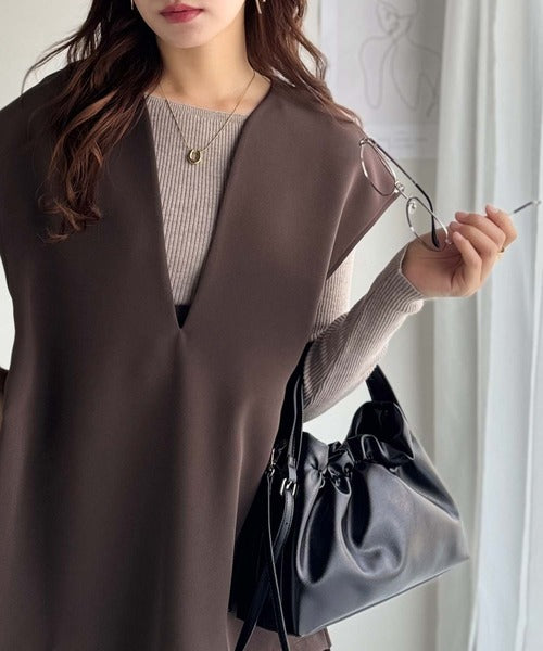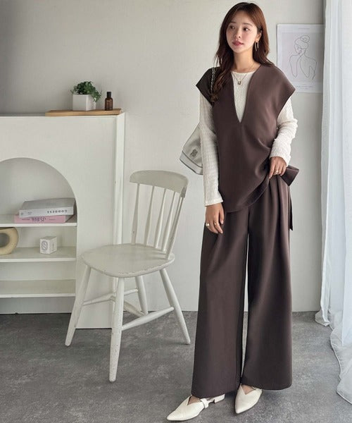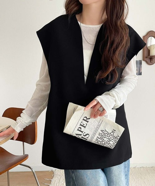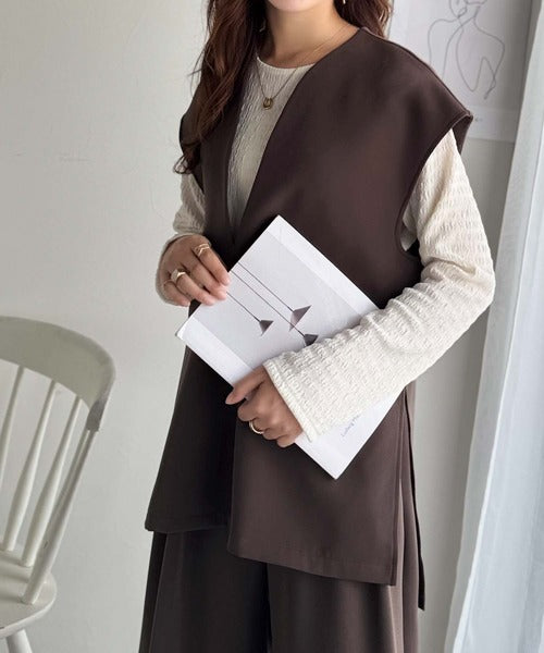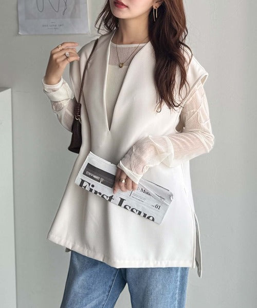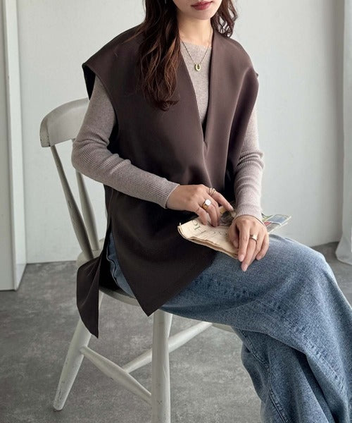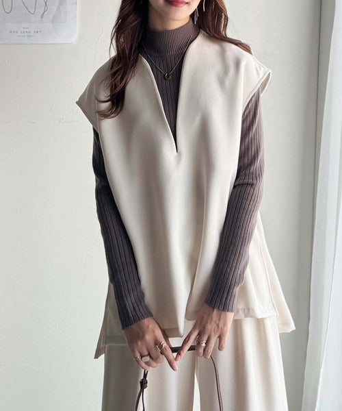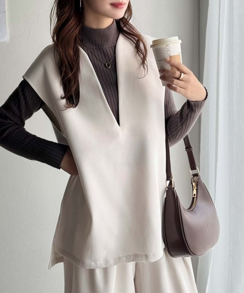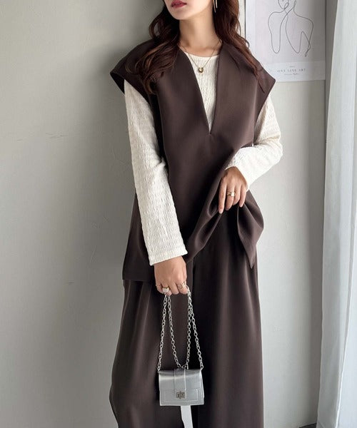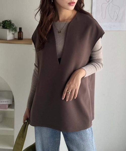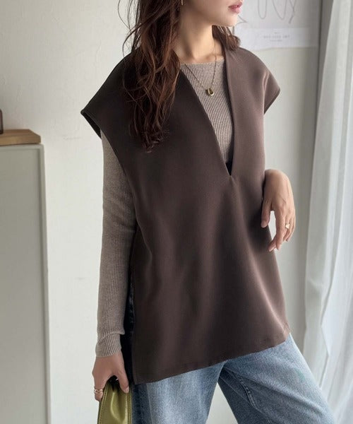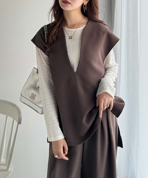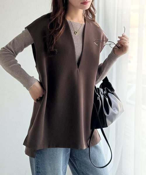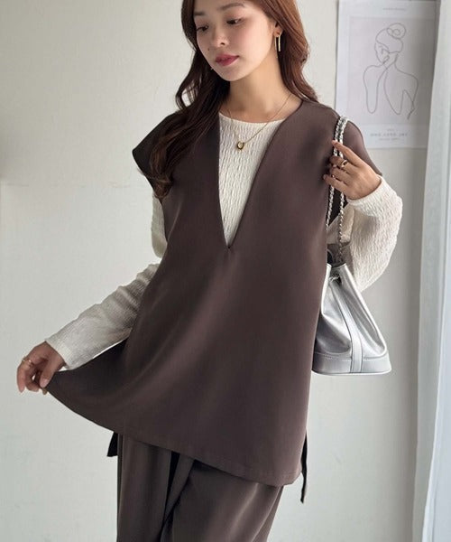 大人の抜け感スタイル◎ディープキーネックベスト(セットアップ可能) ce1070182
