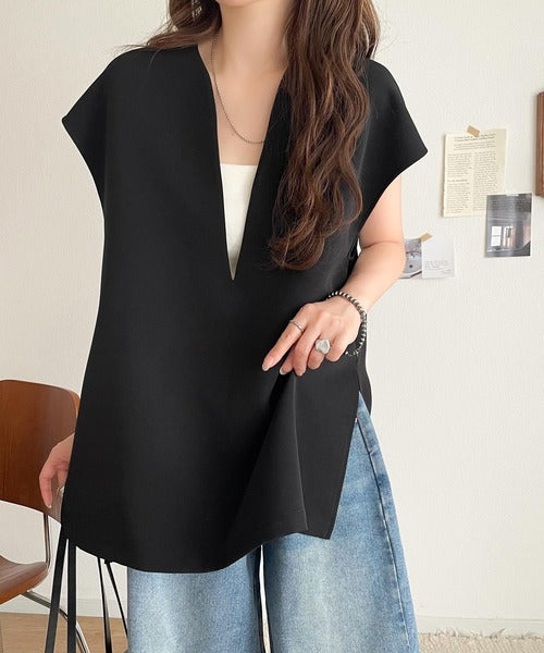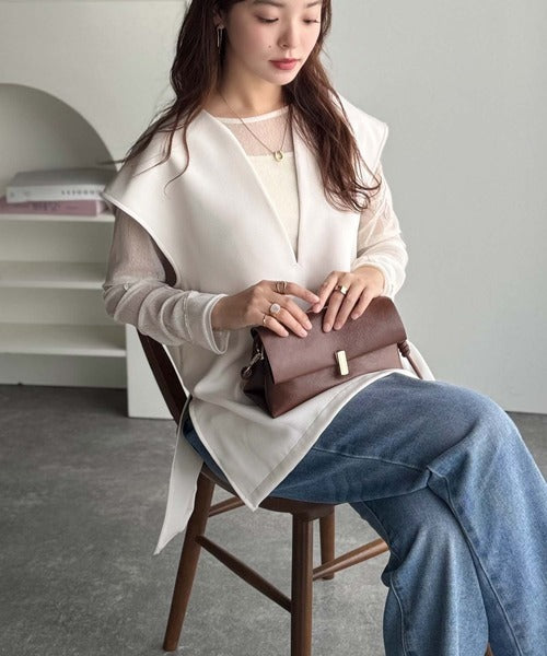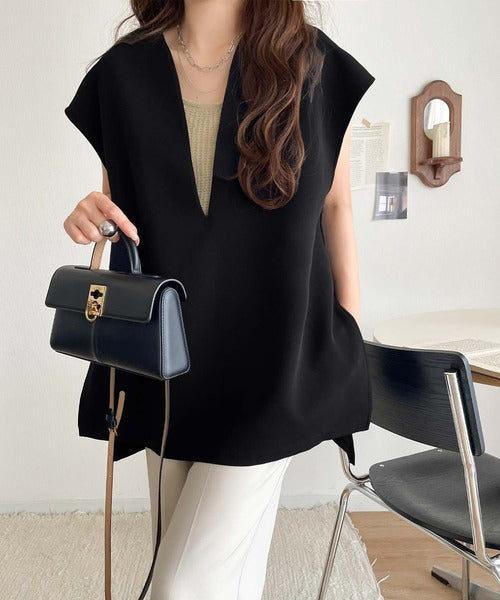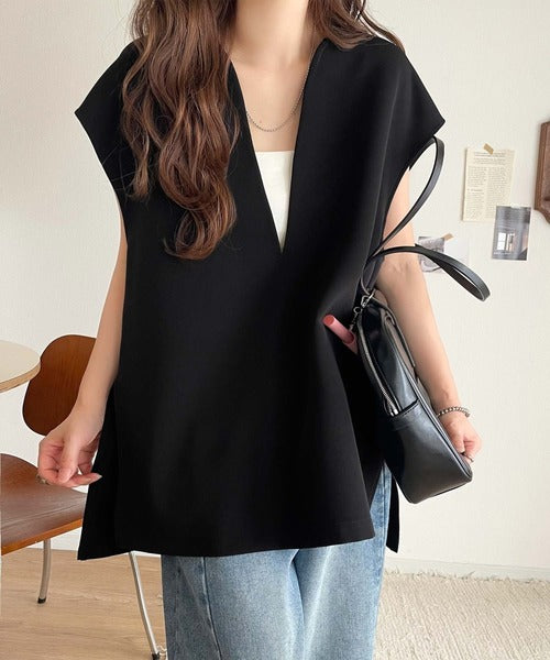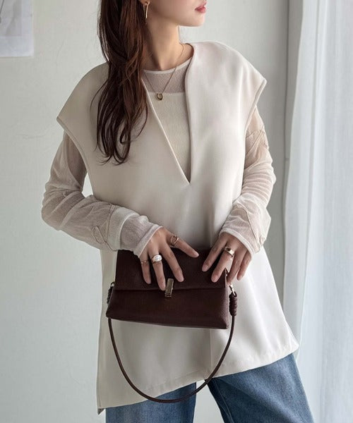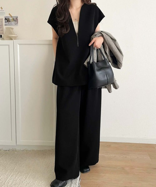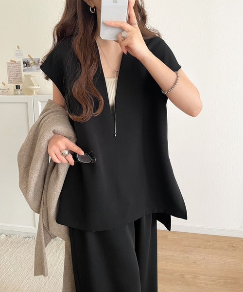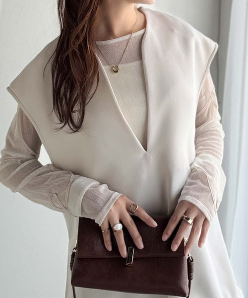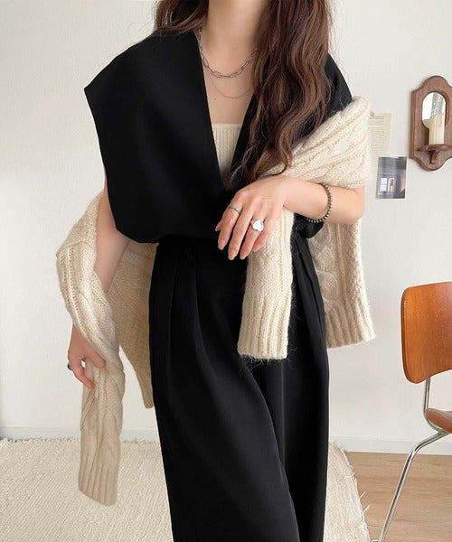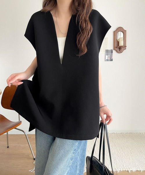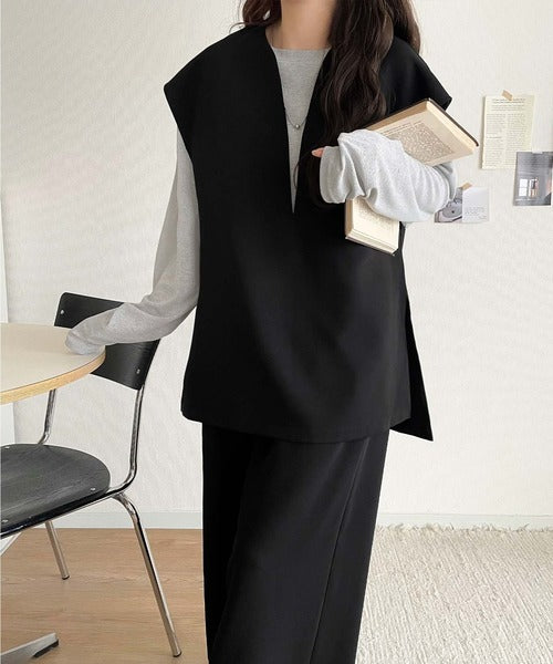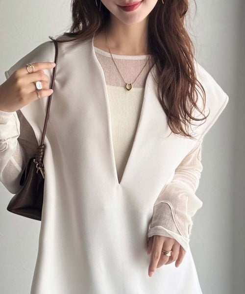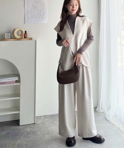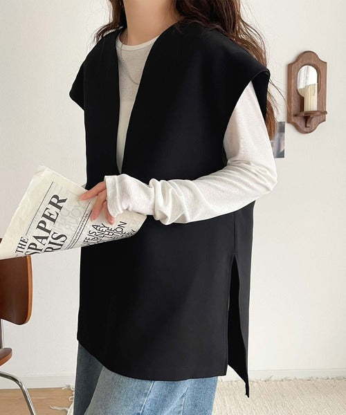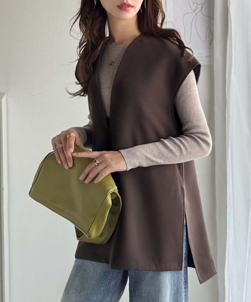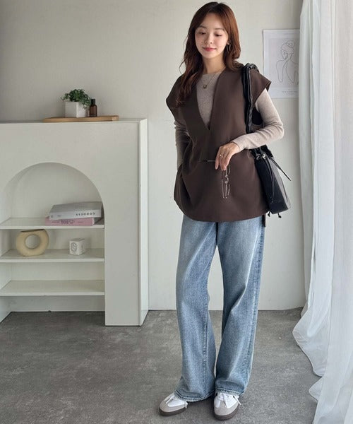 大人の抜け感スタイル◎ディープキーネックベスト(セットアップ可能) ce1070182