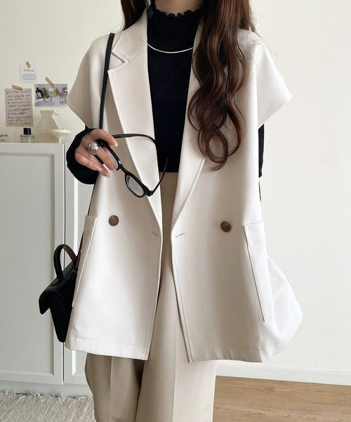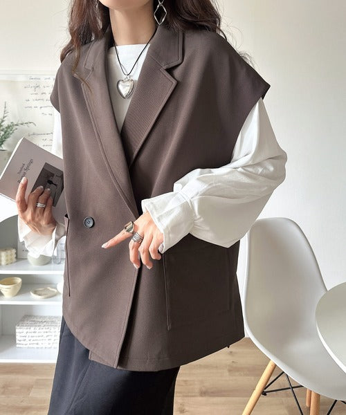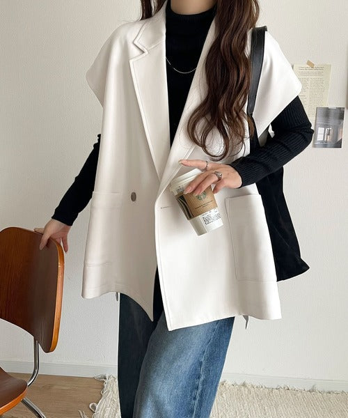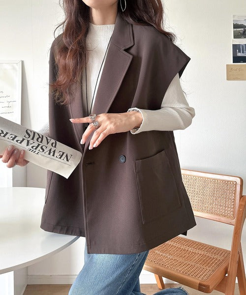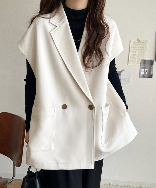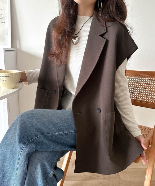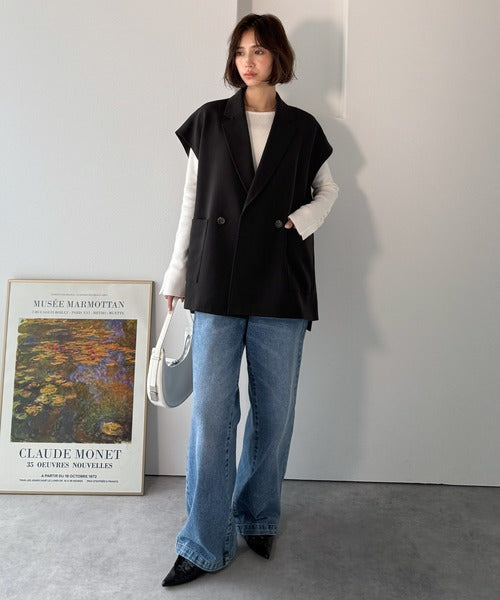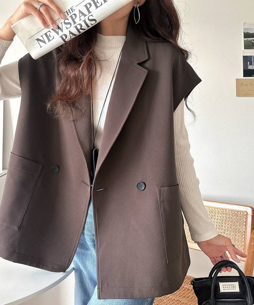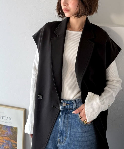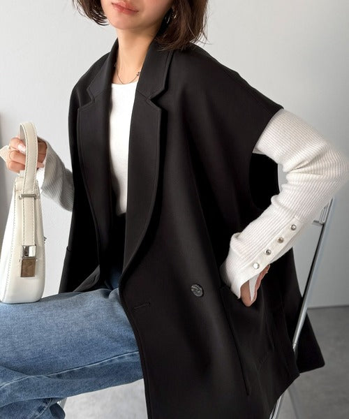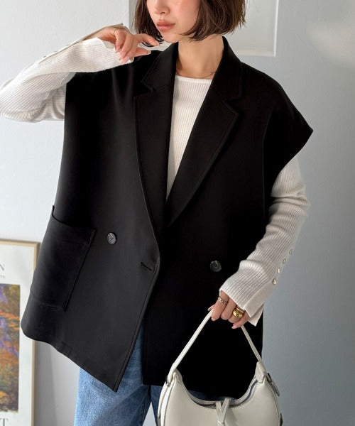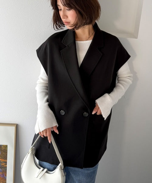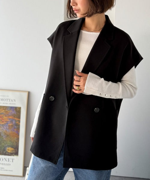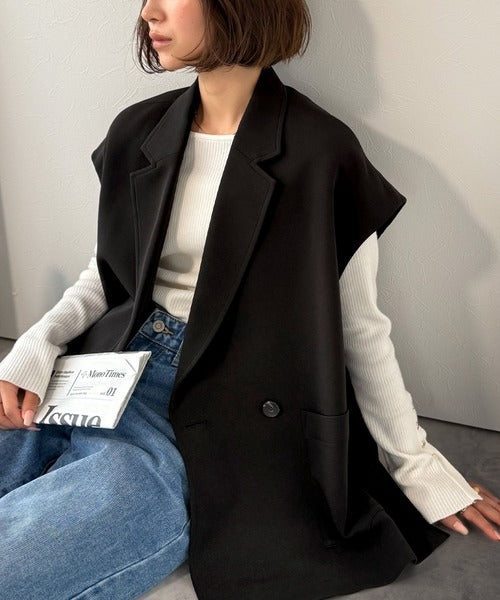 テーラードデザインのダブルジレベスト。オーバーサイズでゆったりとした着心地。