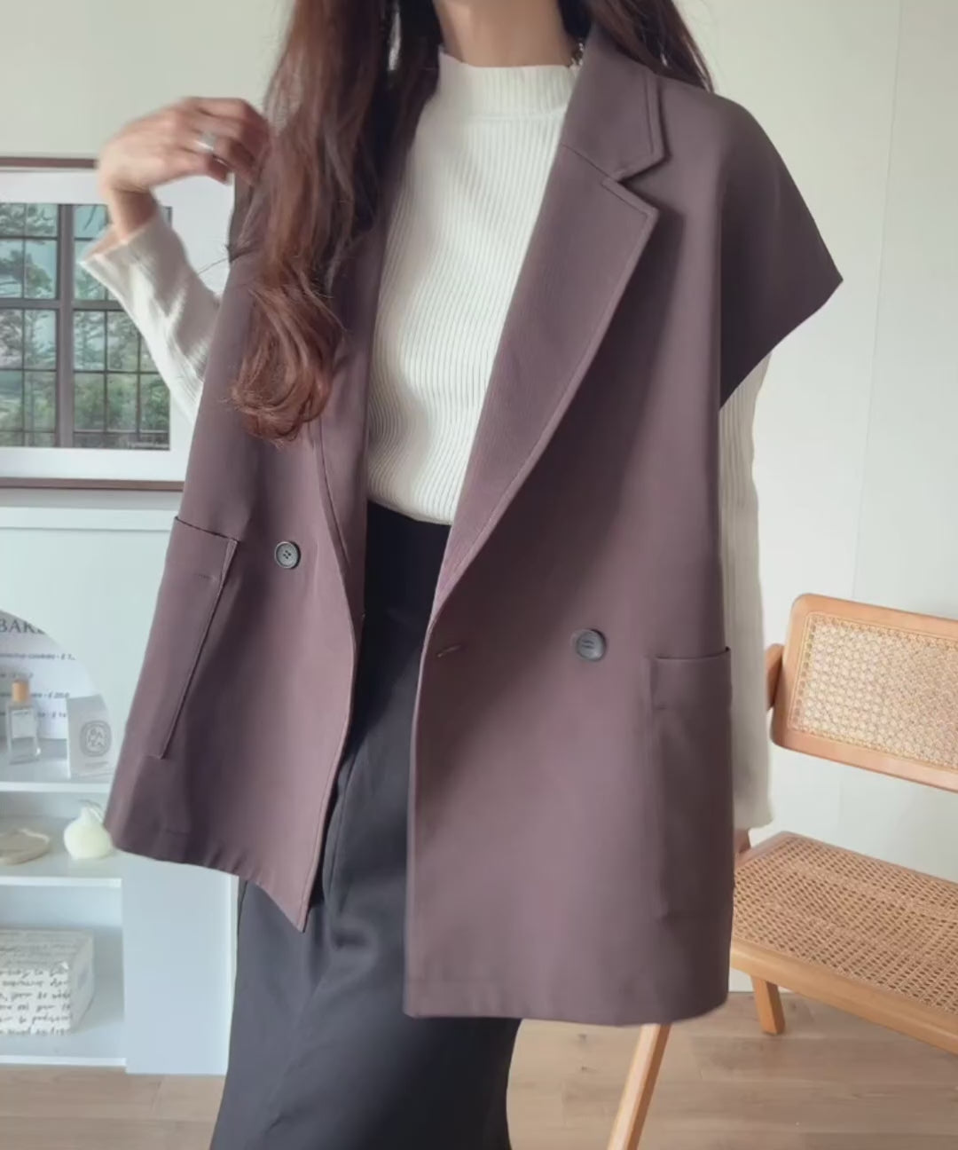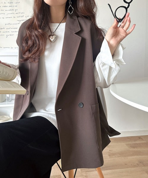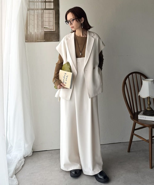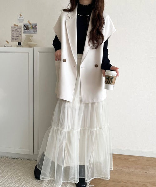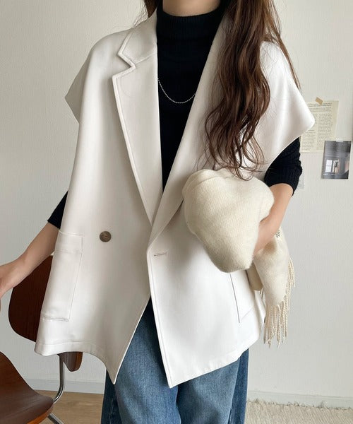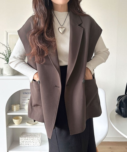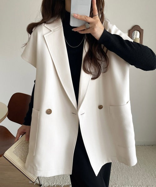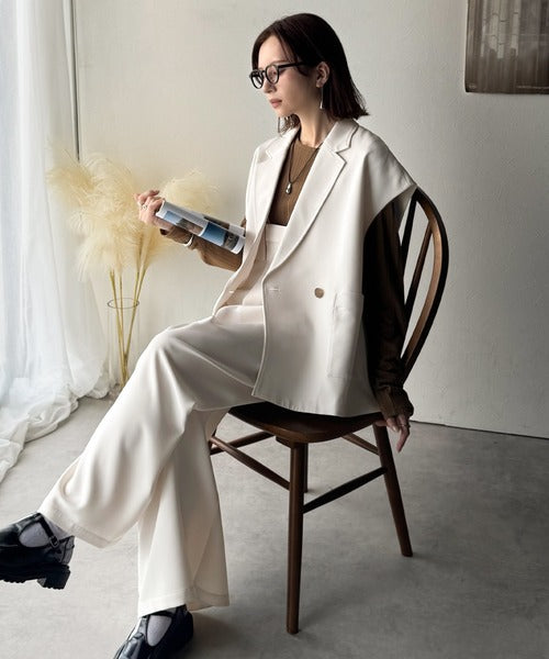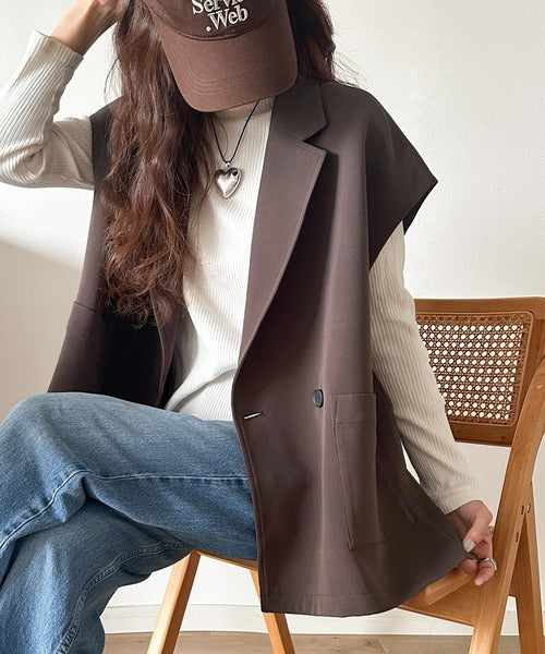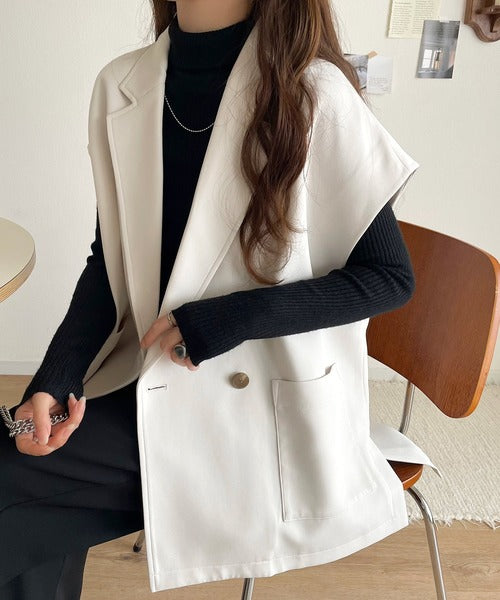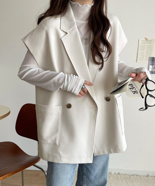 テーラードデザインのダブルジレベスト。オーバーサイズでゆったりとした着心地。