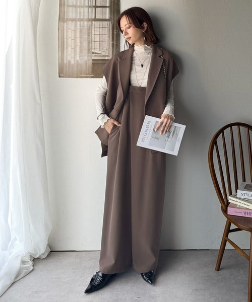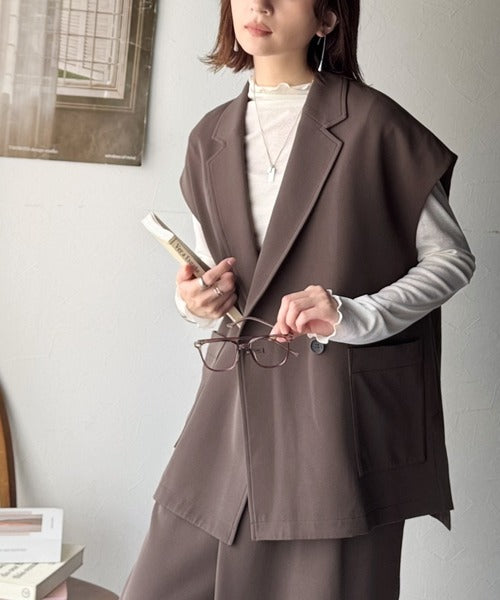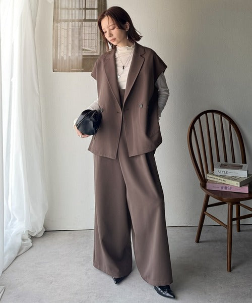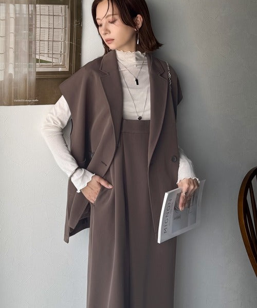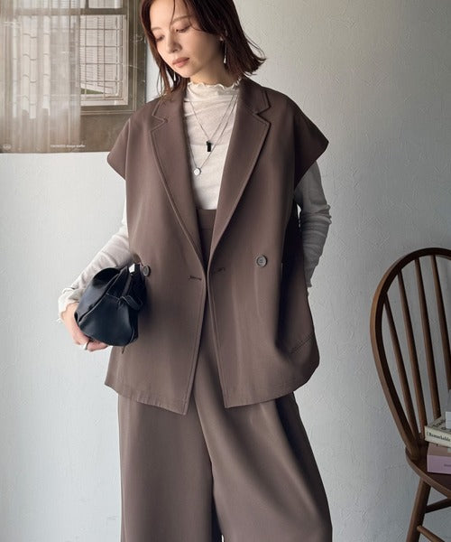 秋コーデの入り口にぴったりの一品。テーラードダブルジレベスト(セットアップ可能) ce1070183