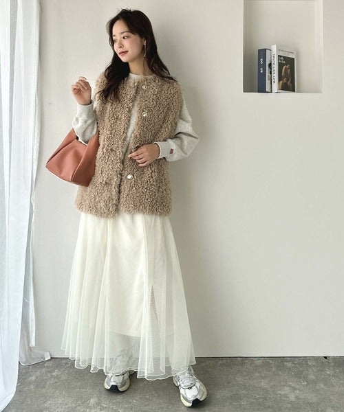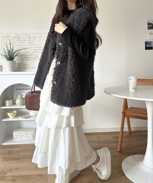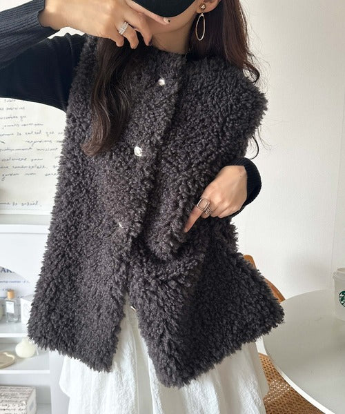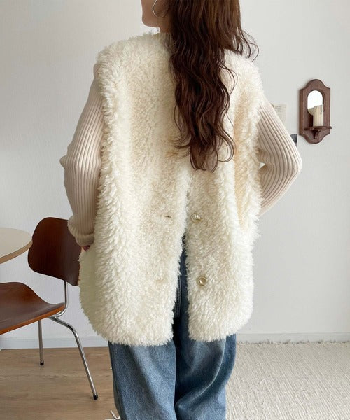 もこもこ感が愛らしい♪暖か前後2wayプードルボアベスト ce1265015