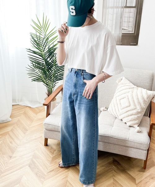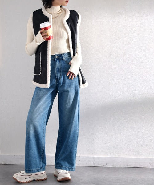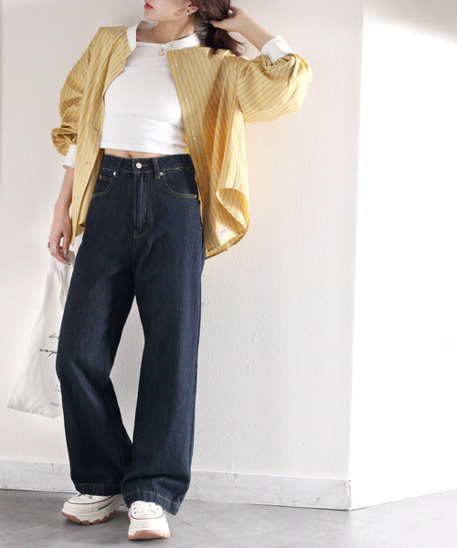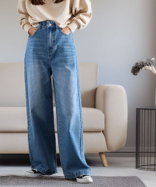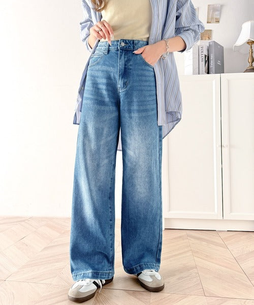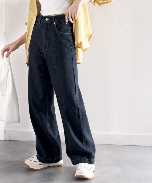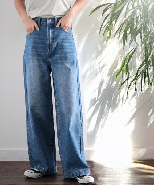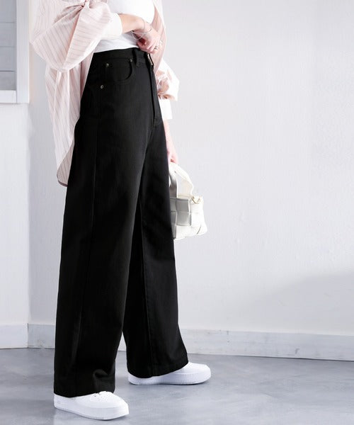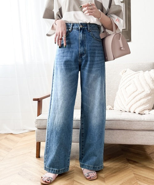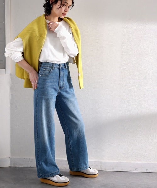 スタイルアップが叶うワイドデニム。
