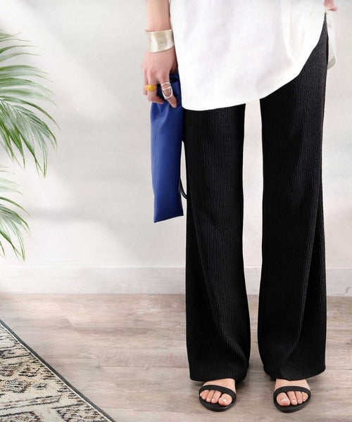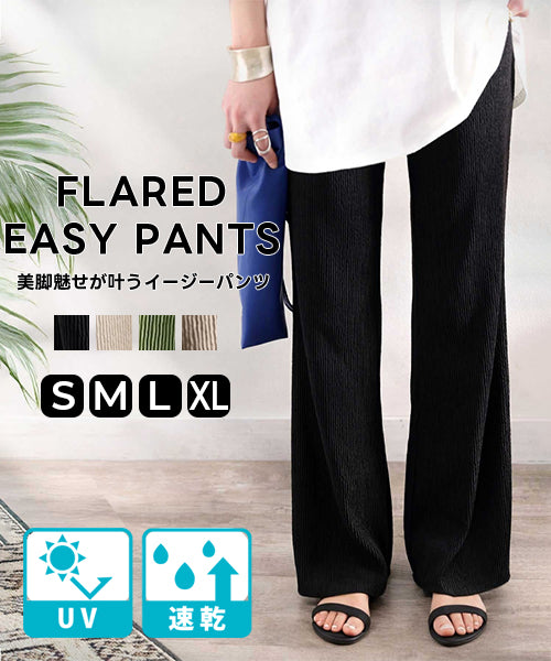大人の程よいフィット感、美脚セミフレアイージーパンツ。