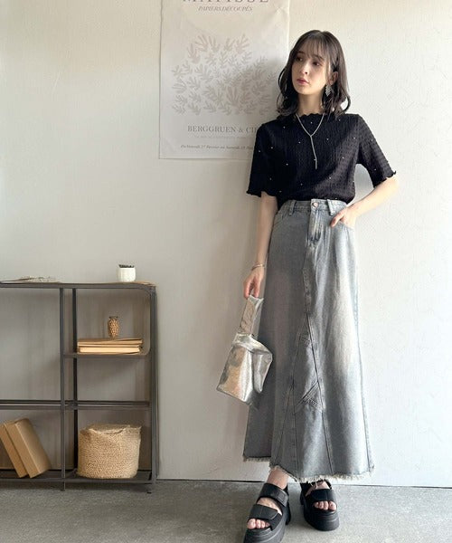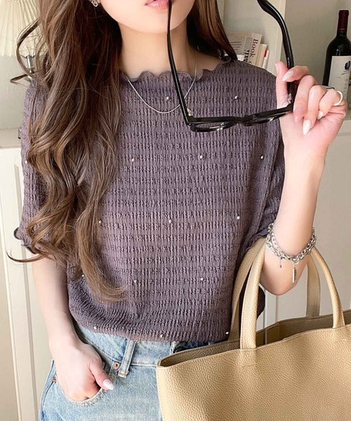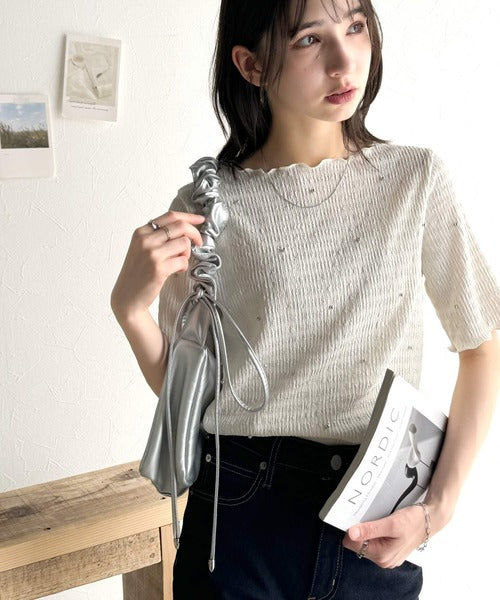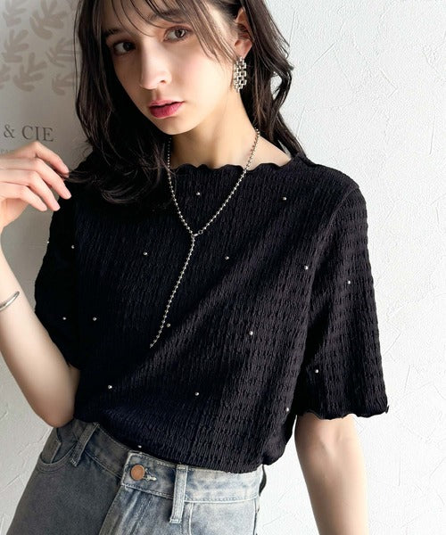 全体にちりばめられたドットスタッズが目を引く着映えカットトップス。