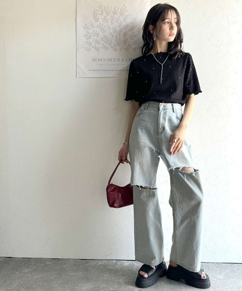 心ときめく夏のスタイルを叶える。メロウビジュ―ジャガードトップス(半袖) ce1010413
