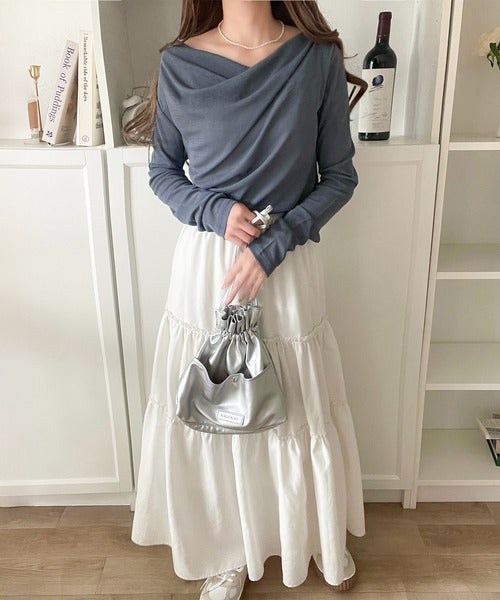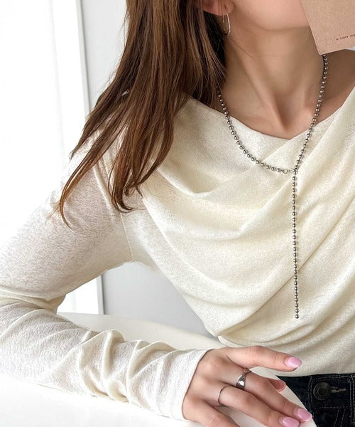 大人のとろみ×透け感。女性らしさが香り立つ。スラブシアードレープトップス(長袖) ce1010473
