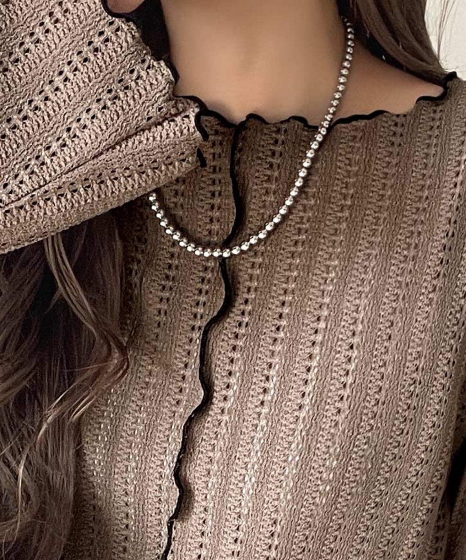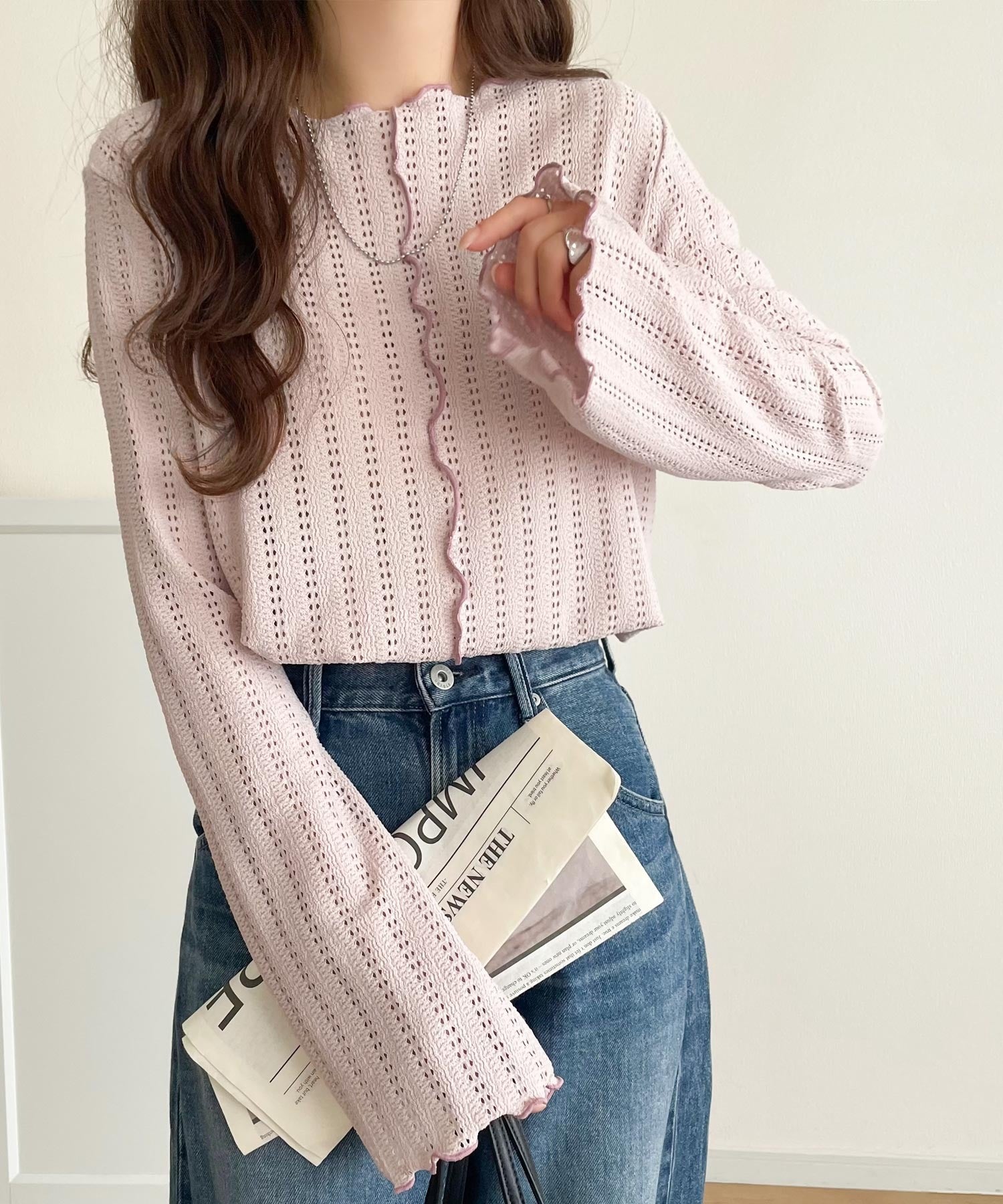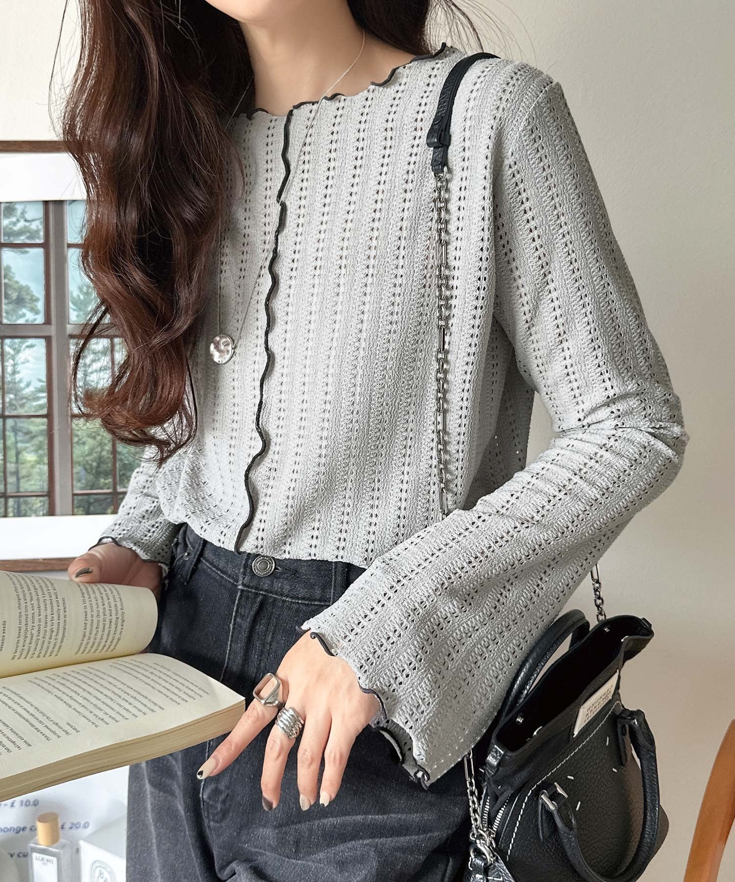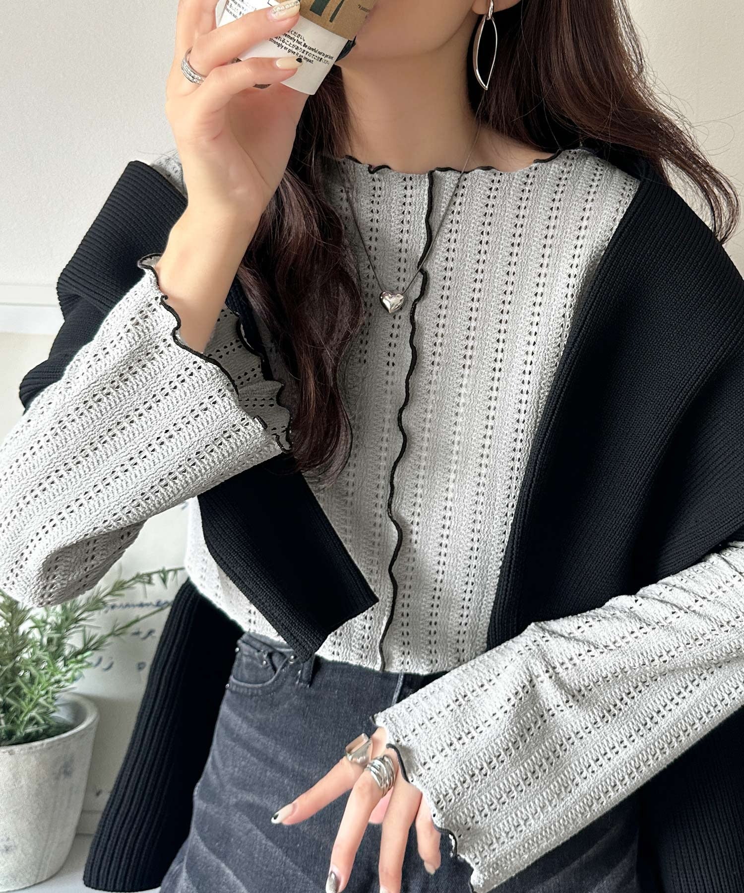 ほどよい透け感と縦ラインの透かし編みで華奢見えが叶う贅沢な1枚♪