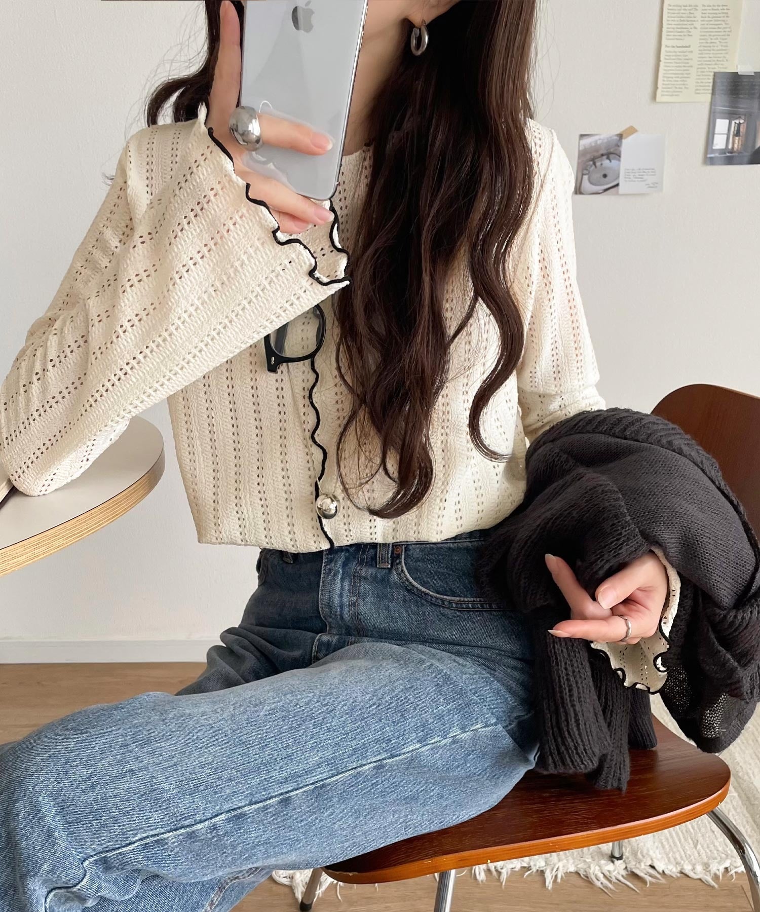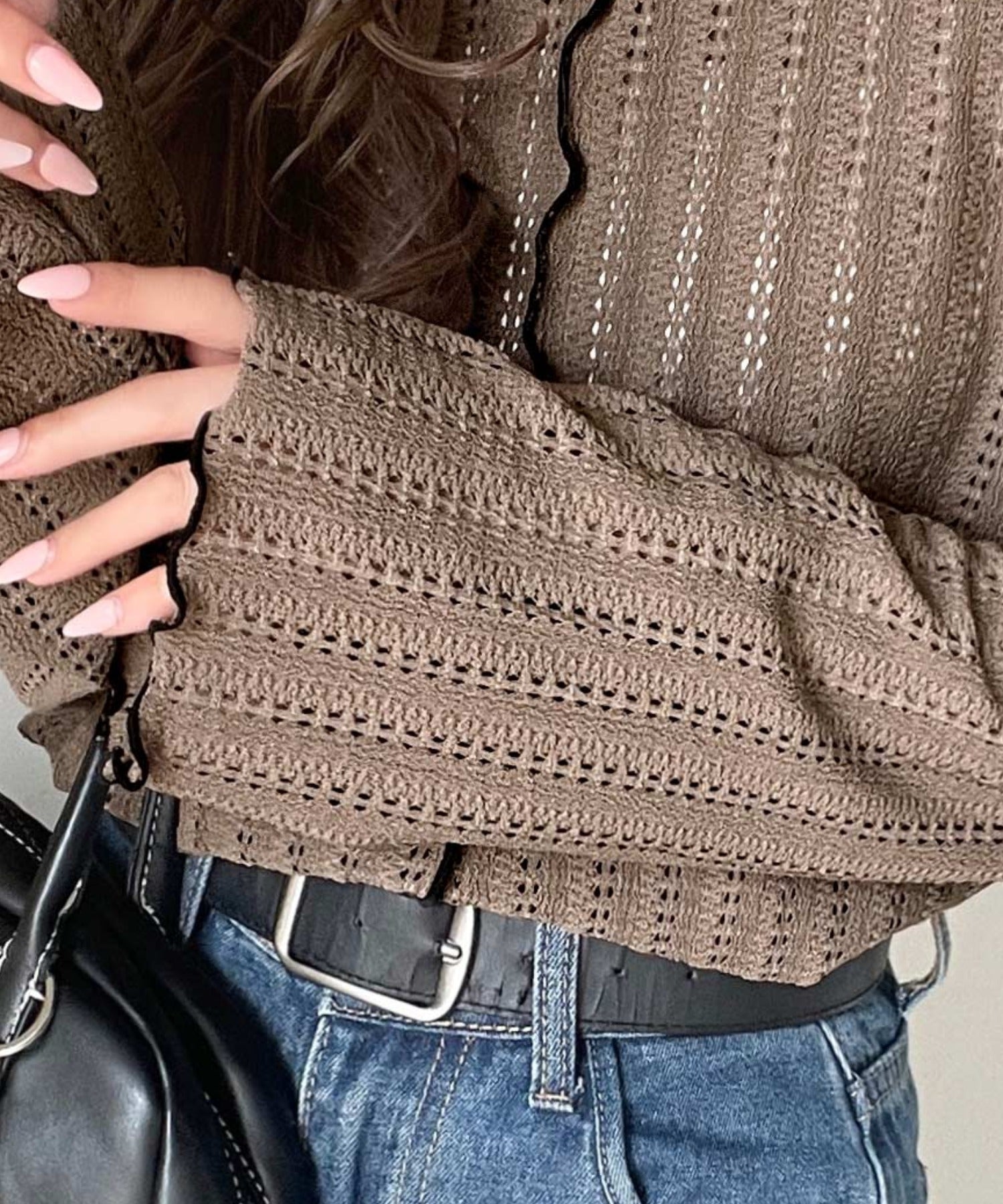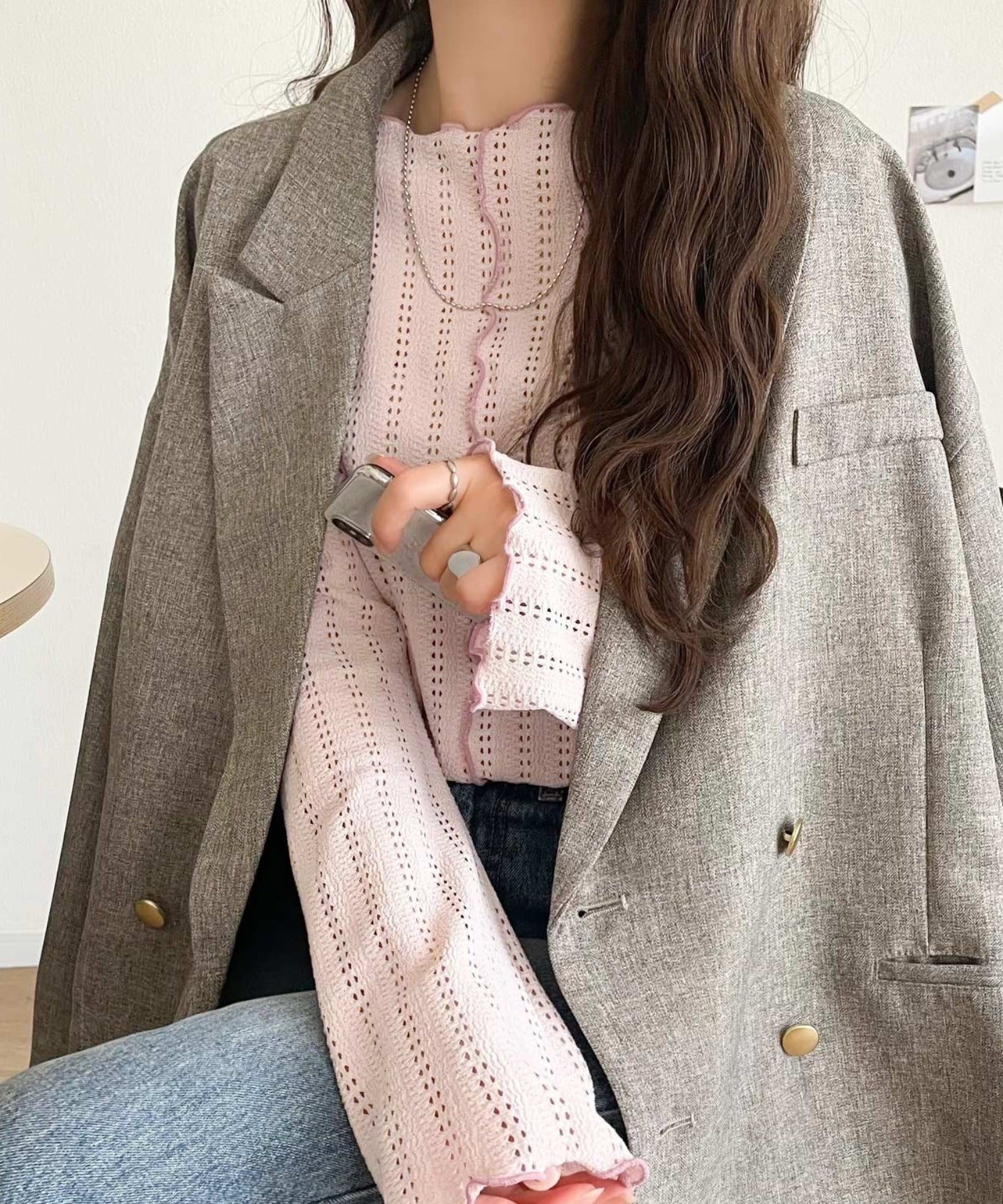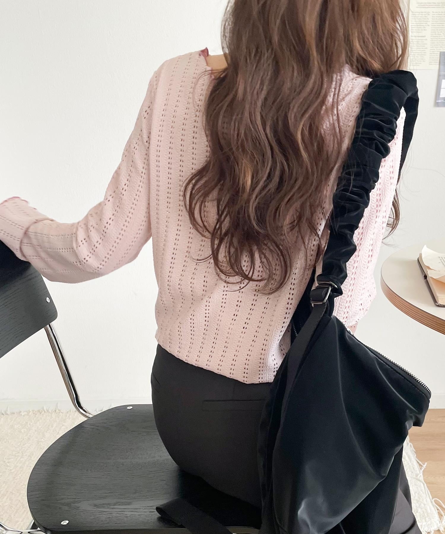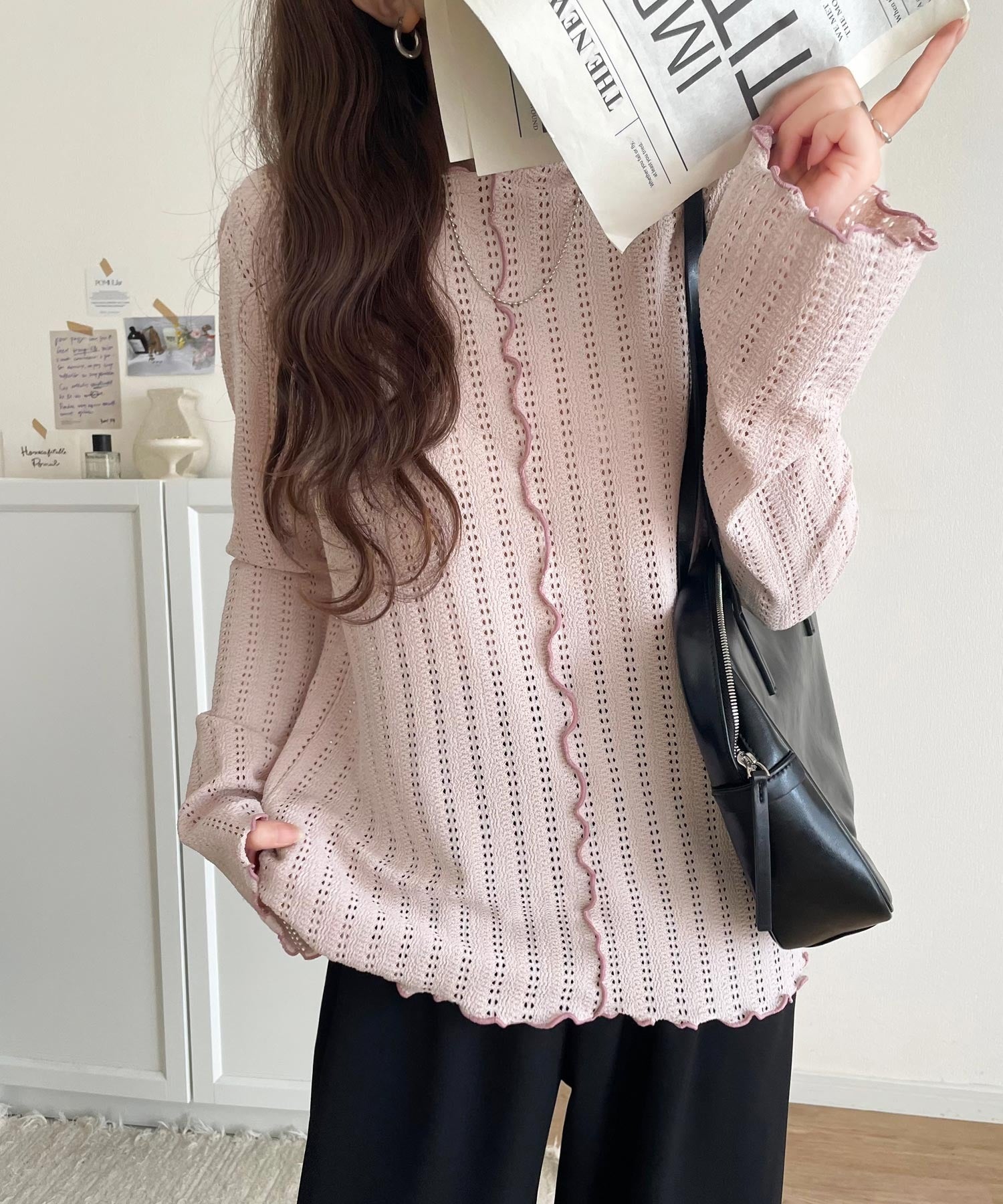 ほどよい透け感と縦ラインの透かし編みで華奢見えが叶う贅沢な1枚♪