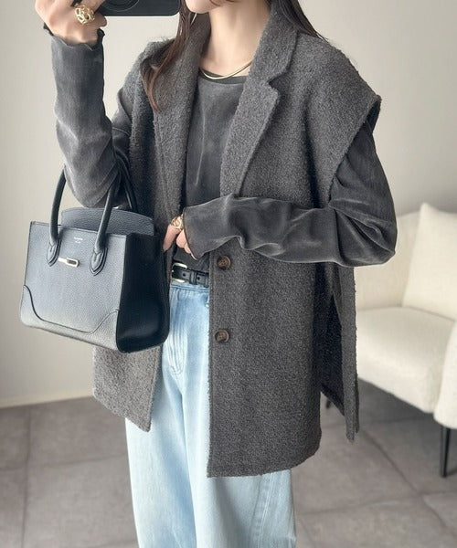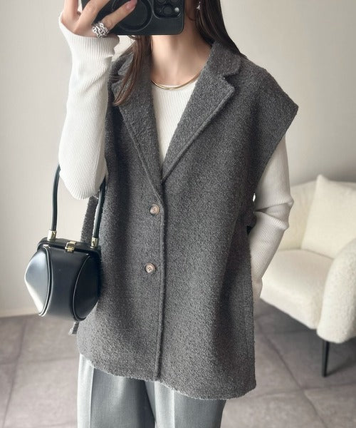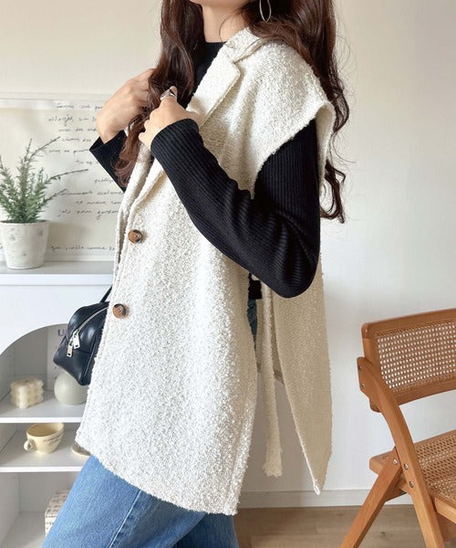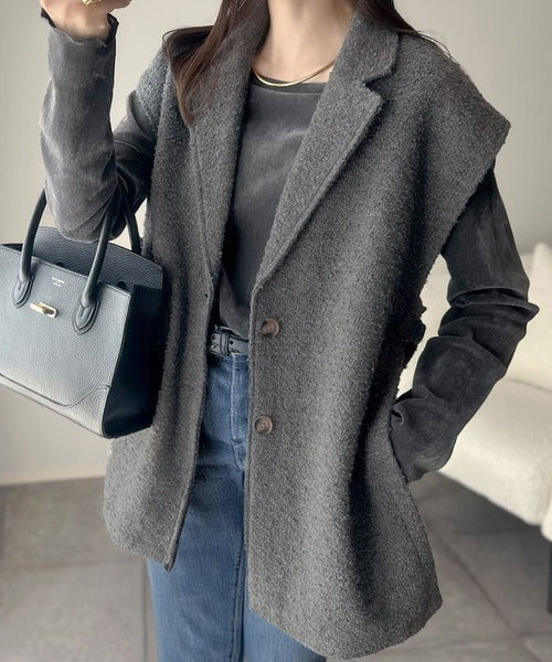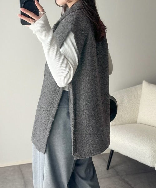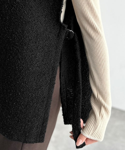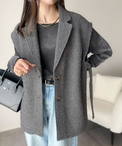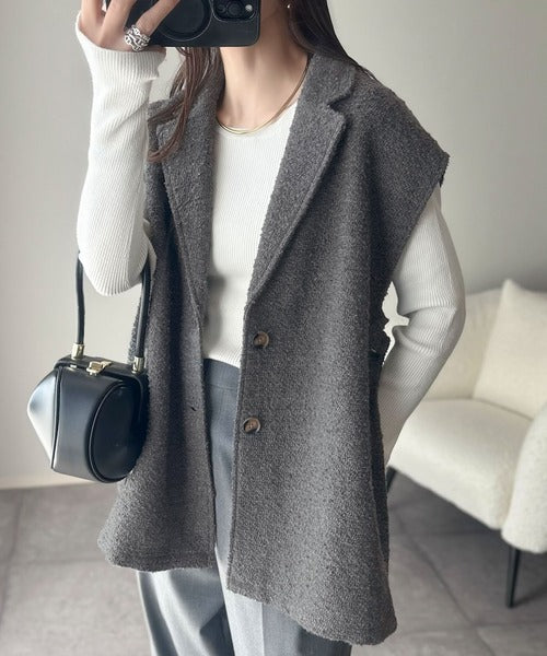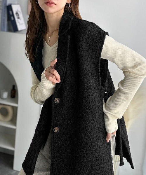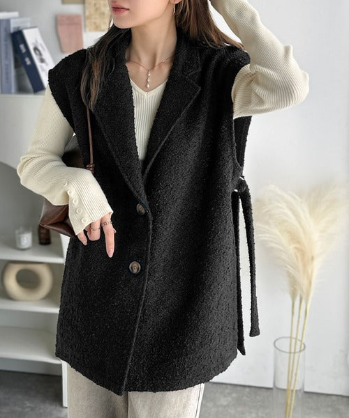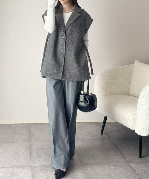 シンプルで洗練された大人の雰囲気を演出。サイドベルトブークレシングルジレベスト(秋冬) ce1010502