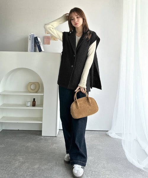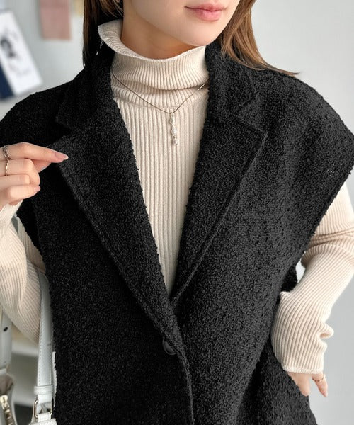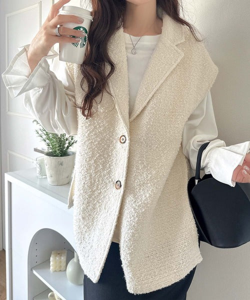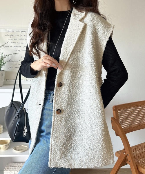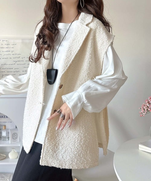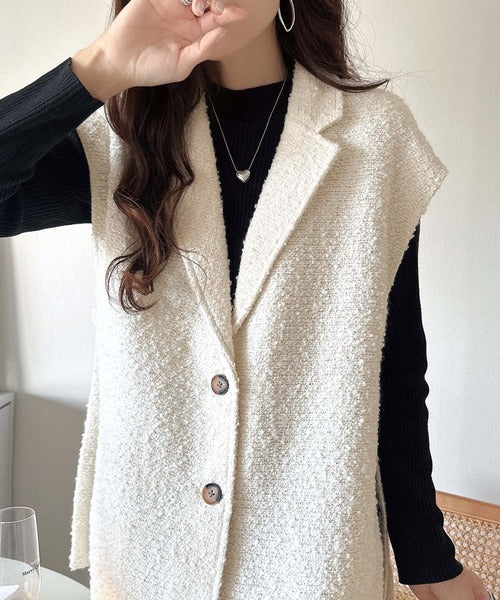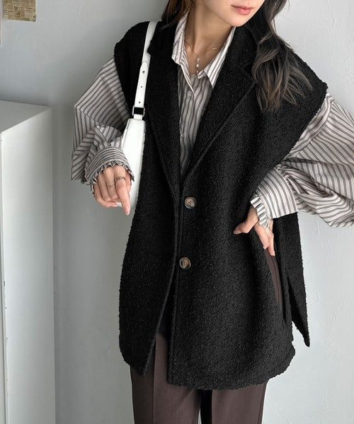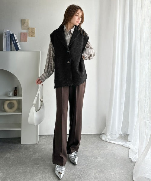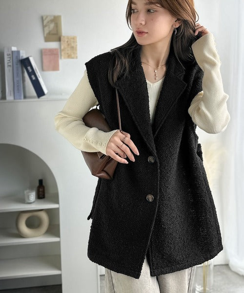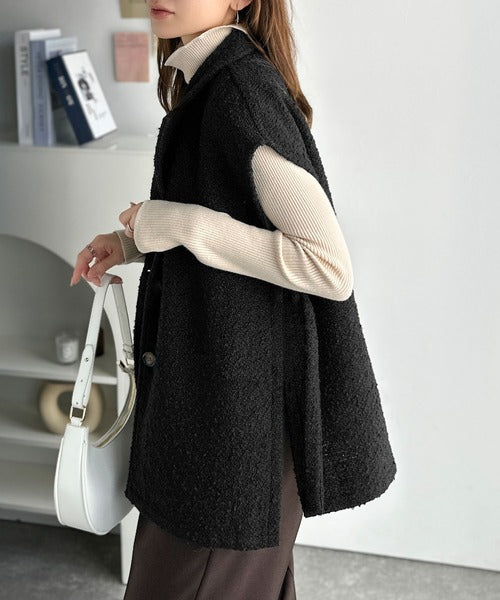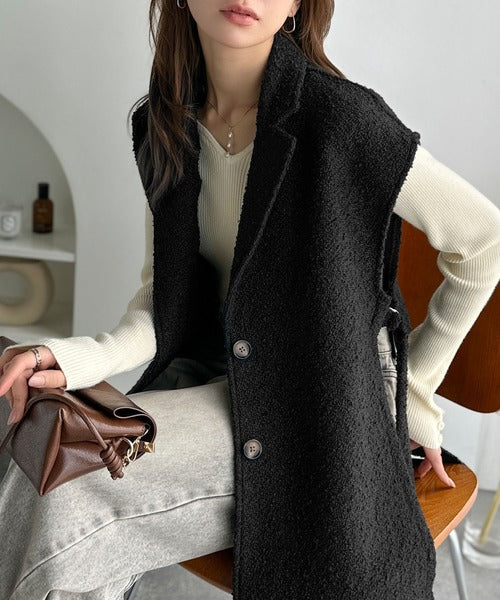 シンプルで洗練された大人の雰囲気を演出。サイドベルトブークレシングルジレベスト(秋冬) ce1010502