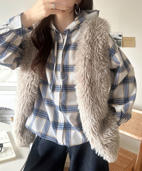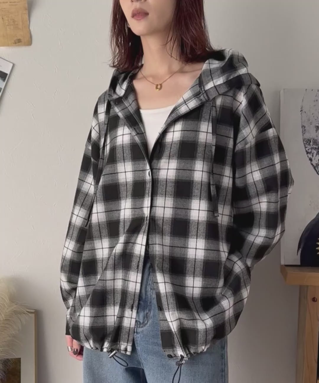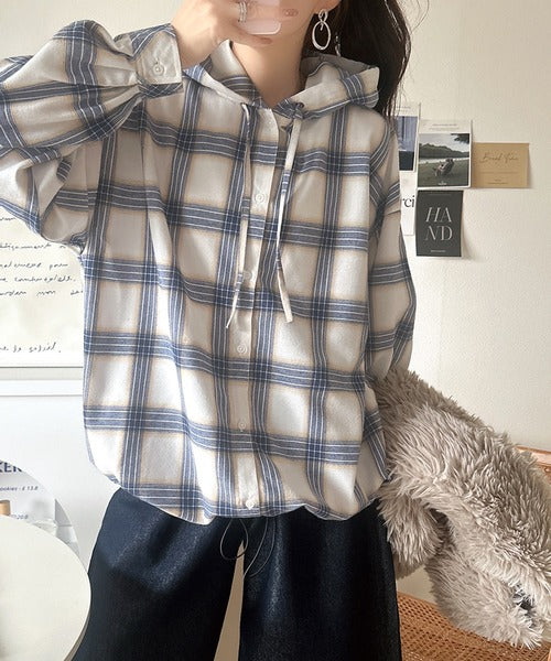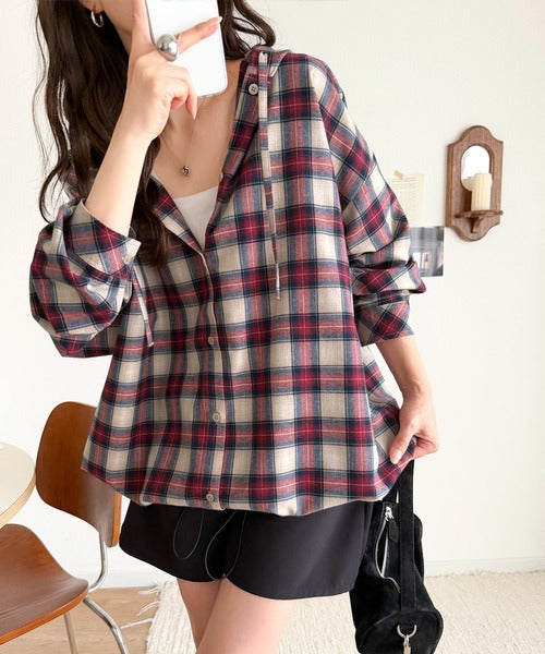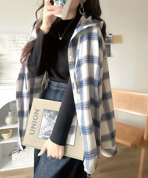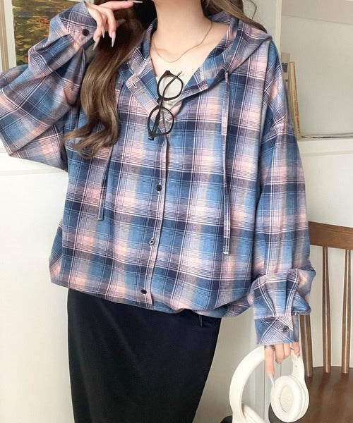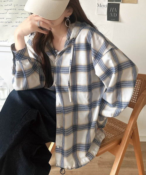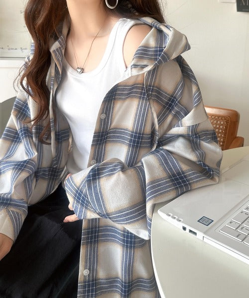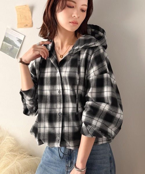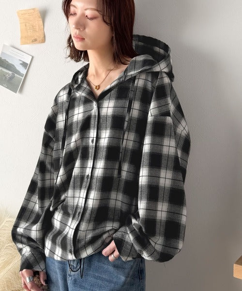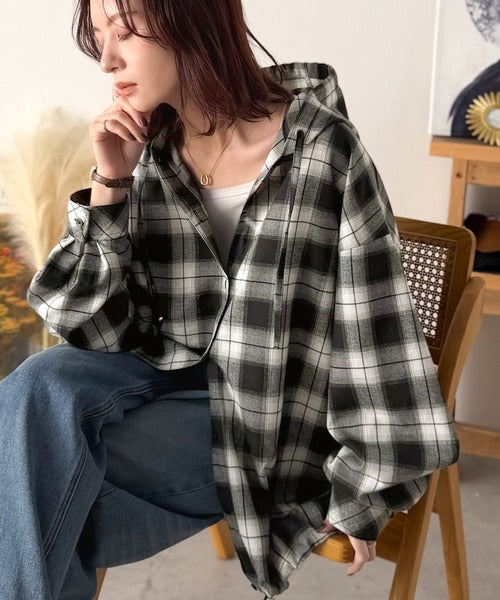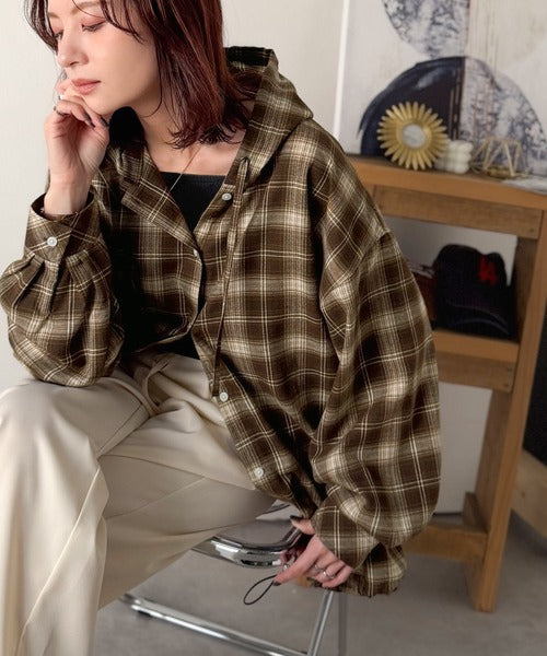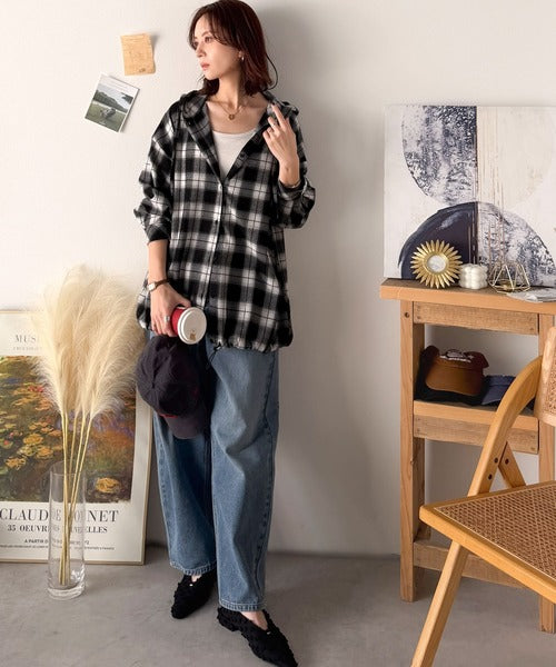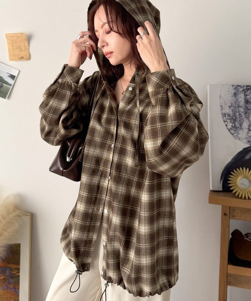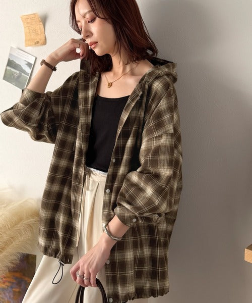 ふんわり抜け感をまとう、大人のためのチェックシャツパーカー。
