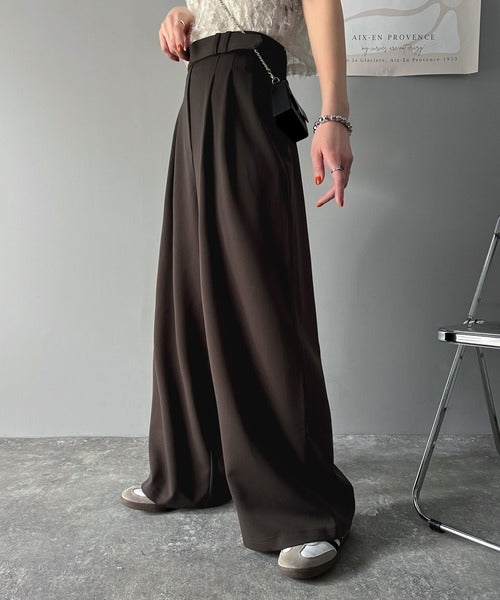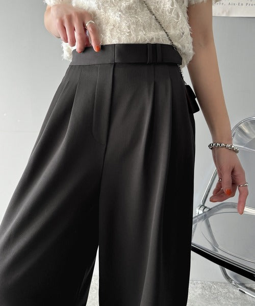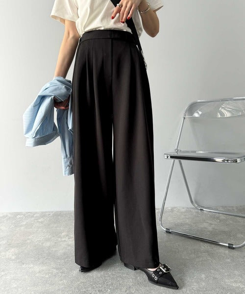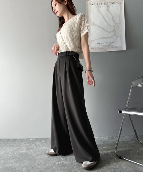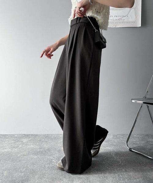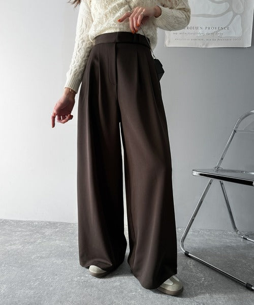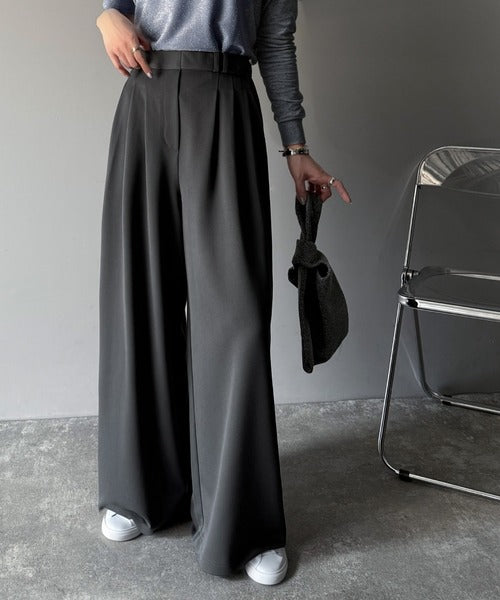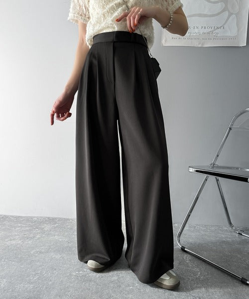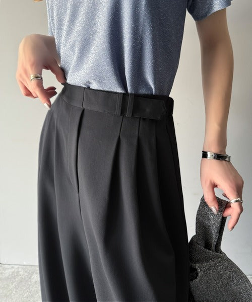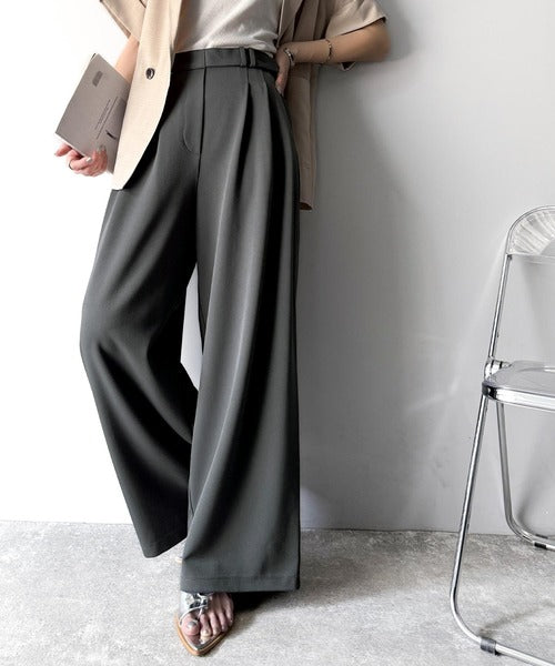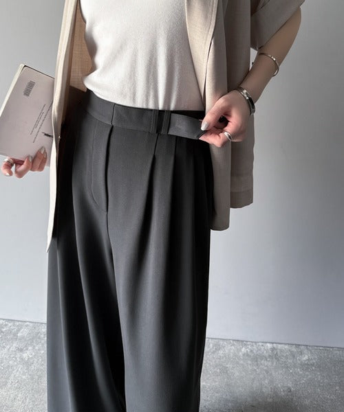 穿くだけで即キレイ見え。サイドベルトデザイン3タックストレッチスラックスパンツ ce1020228