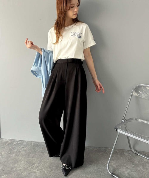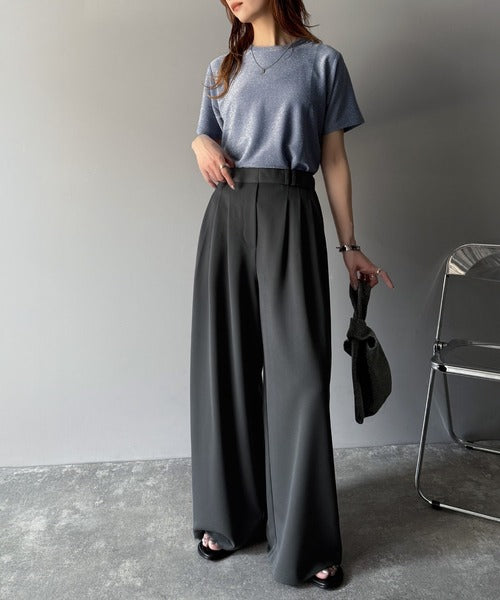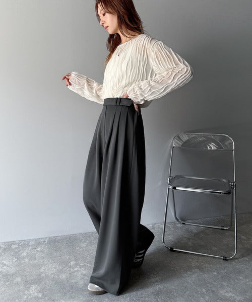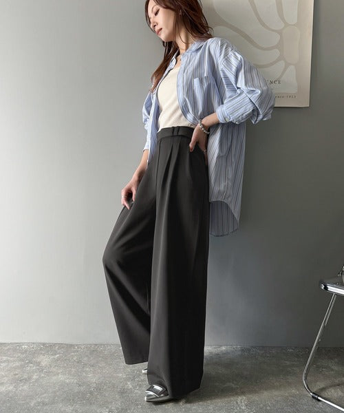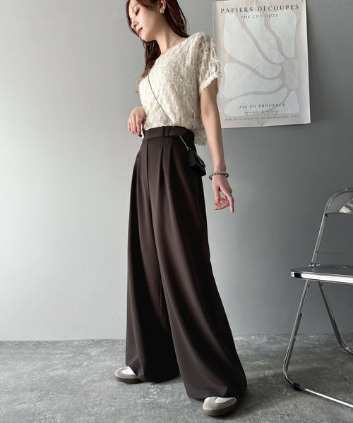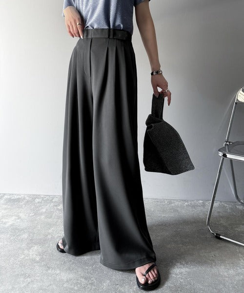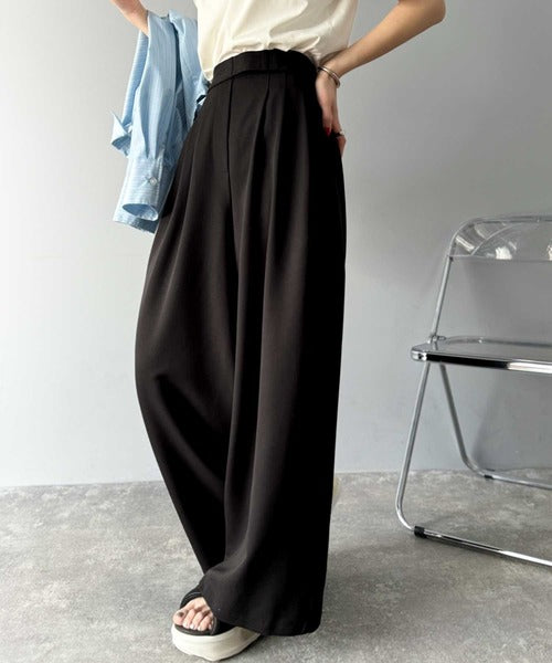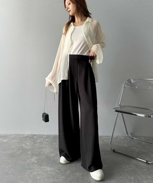 ウエストゴム&ベルトで快適な穿き心地のワイドスラックス。