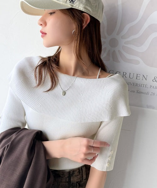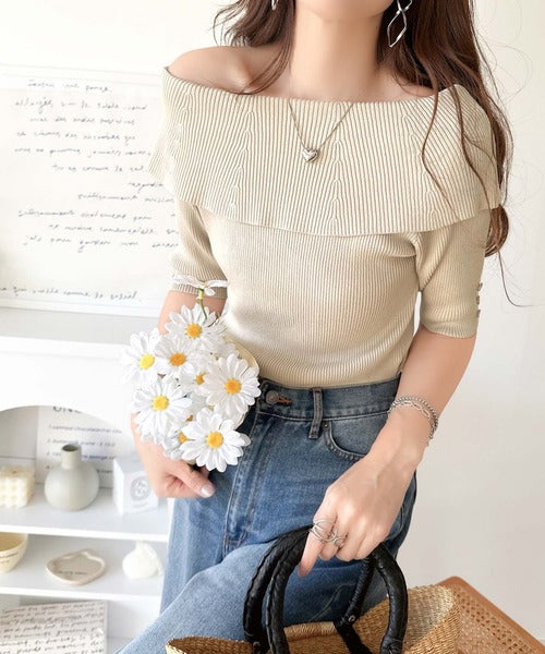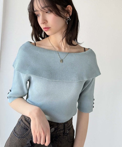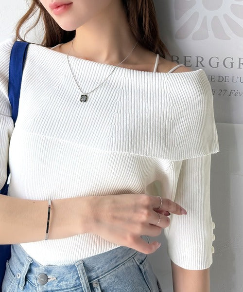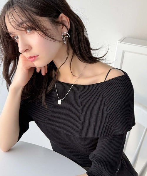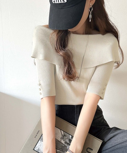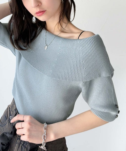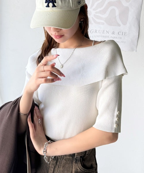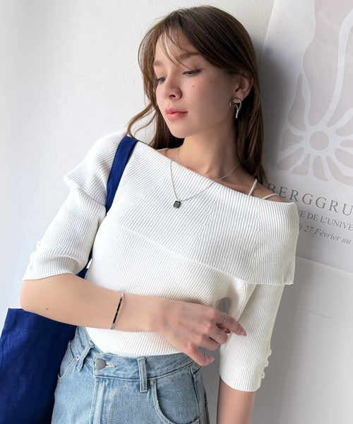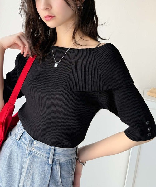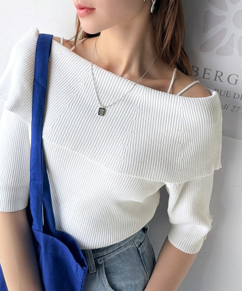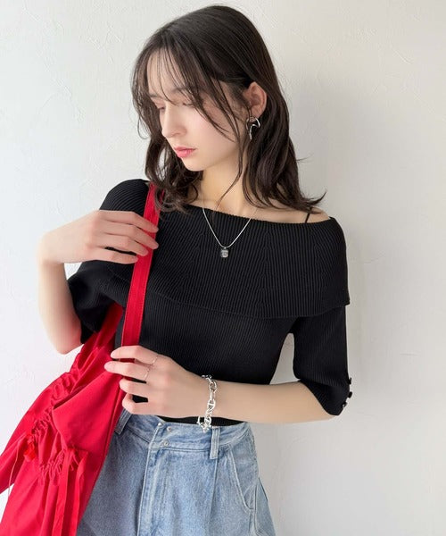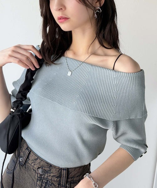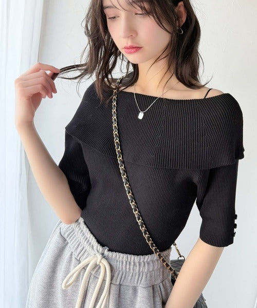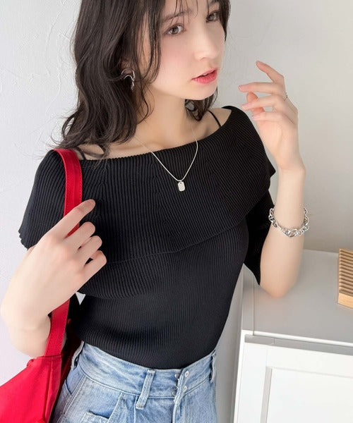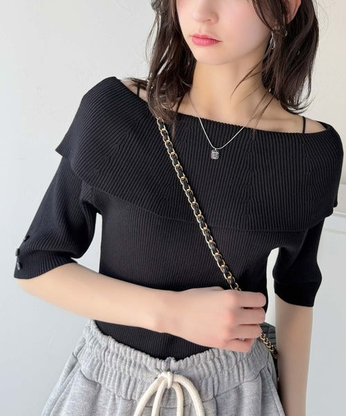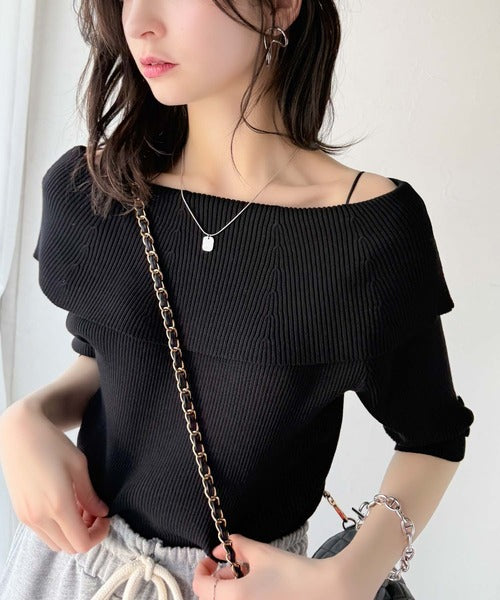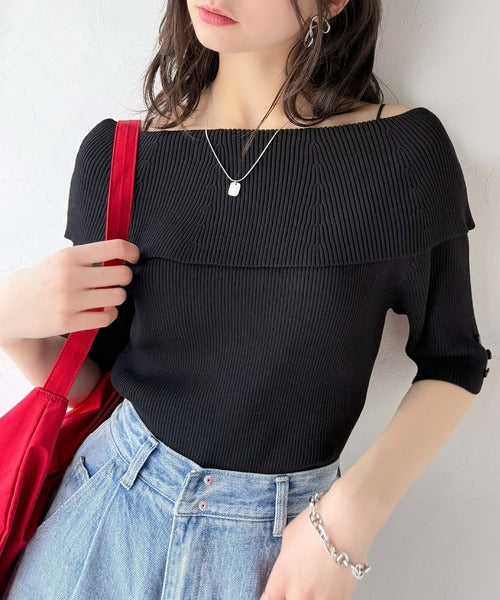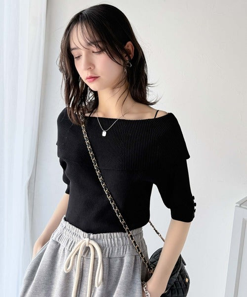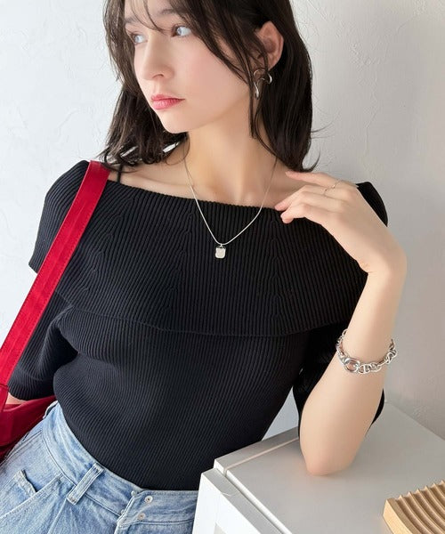 大人フェミニンな着こなし。オフショルリブニット(半袖) ce1020234