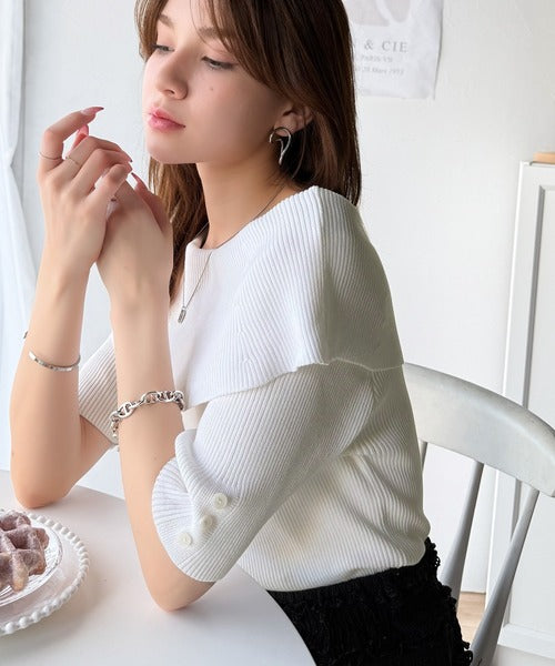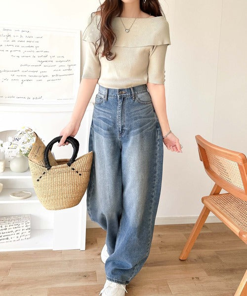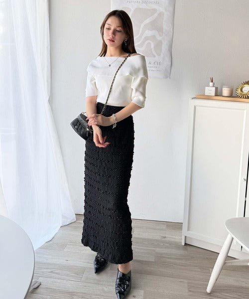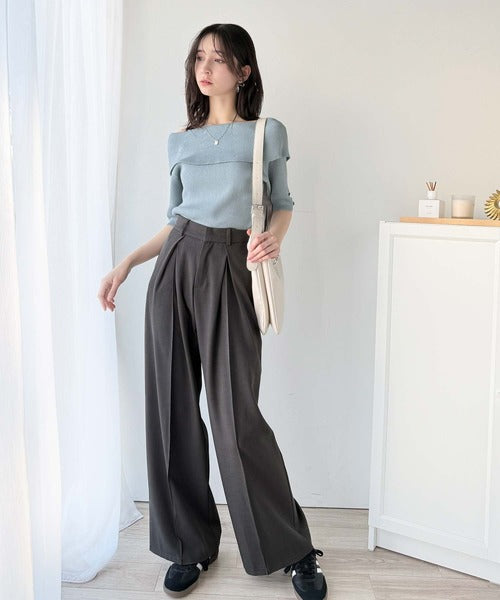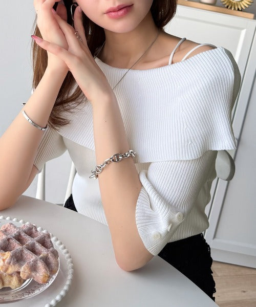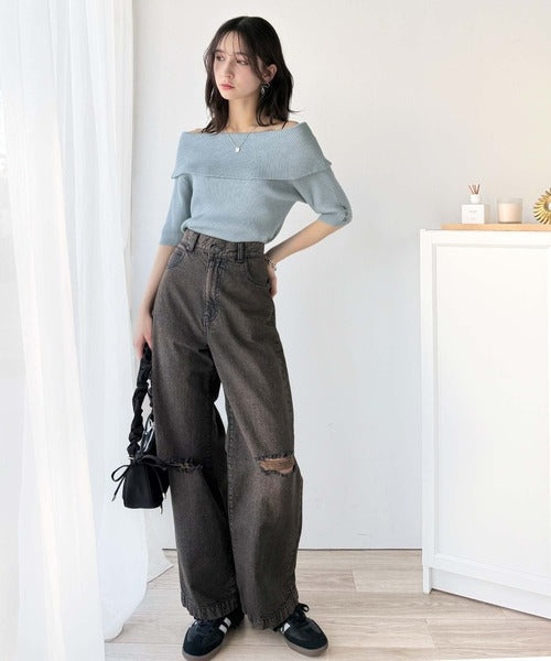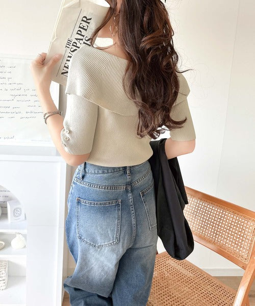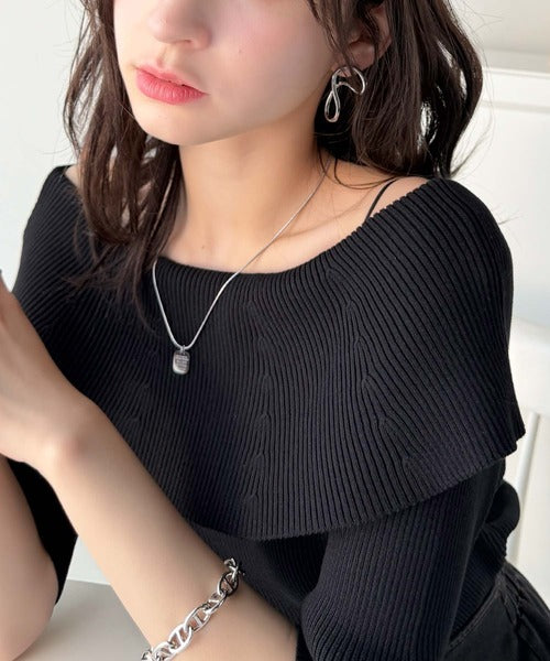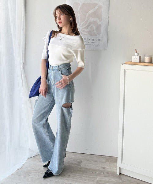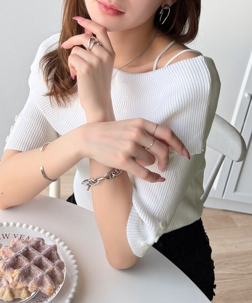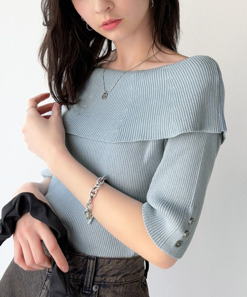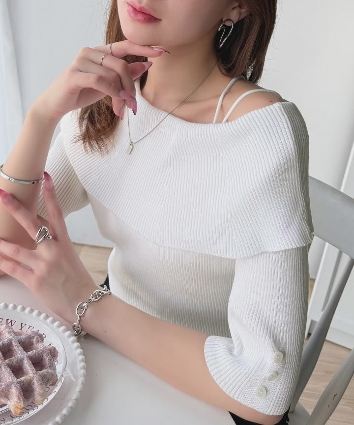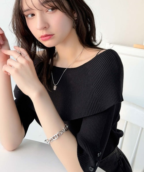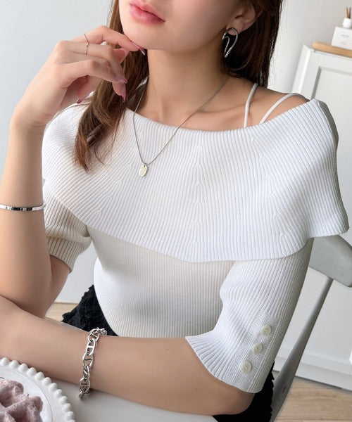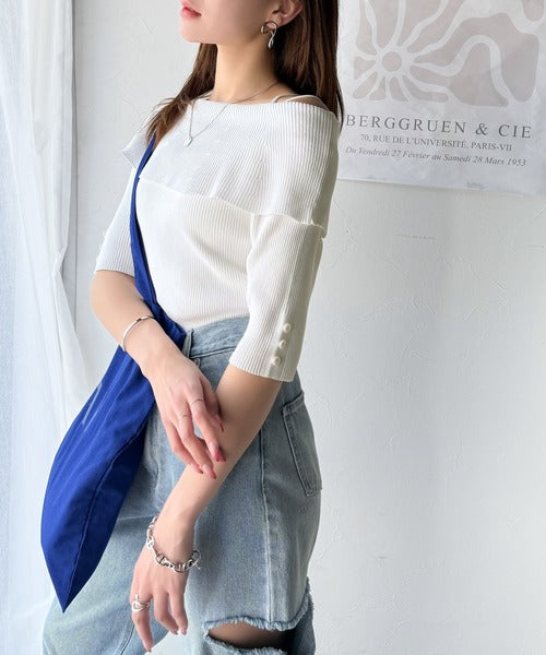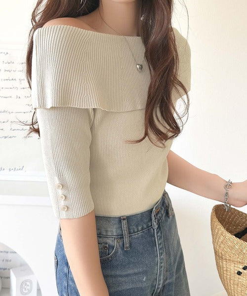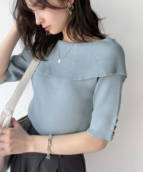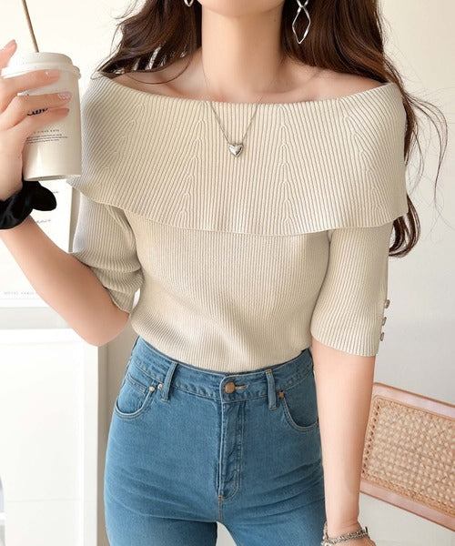 大人フェミニンな着こなし。オフショルリブニット(半袖) ce1020234