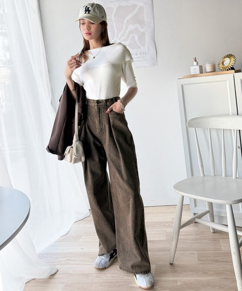 その日の気分に合わせてデニムやフレアパンツを合わせてもOK◎