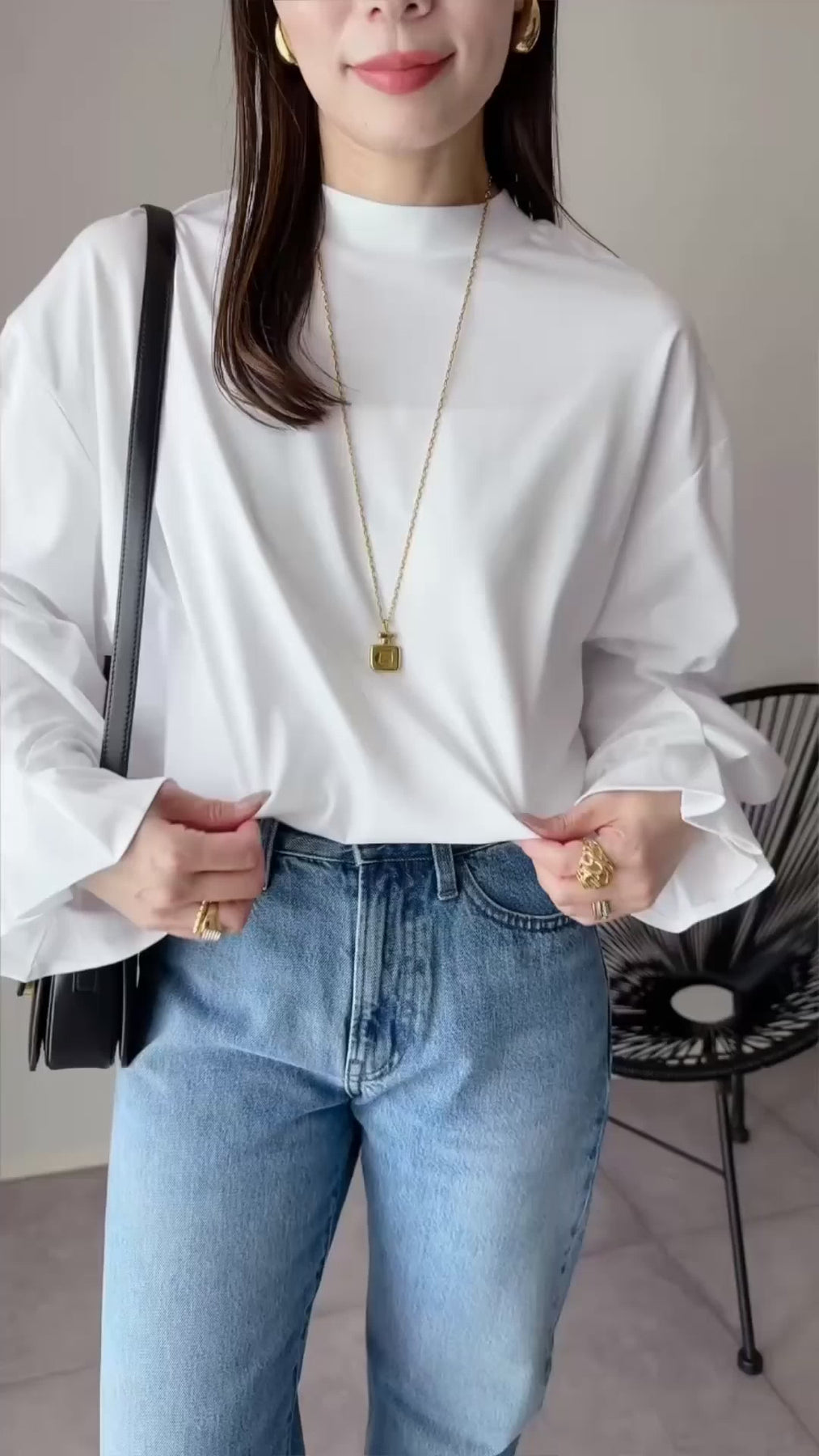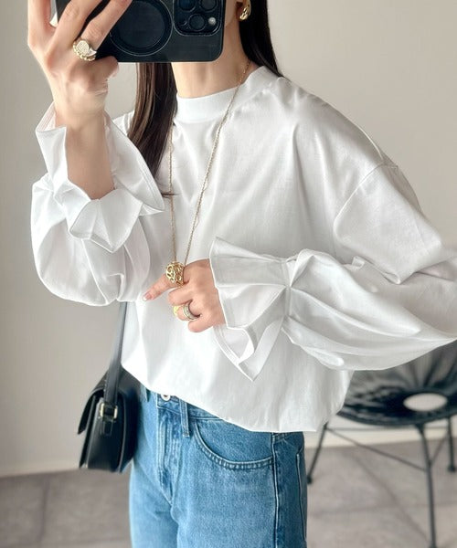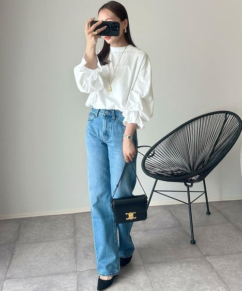 袖のボリューム感がアクセントになり、カジュアルすぎない大人スタイルに◎