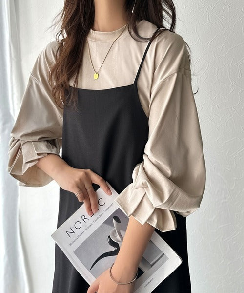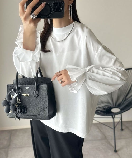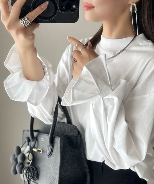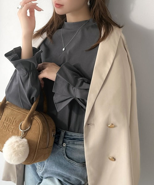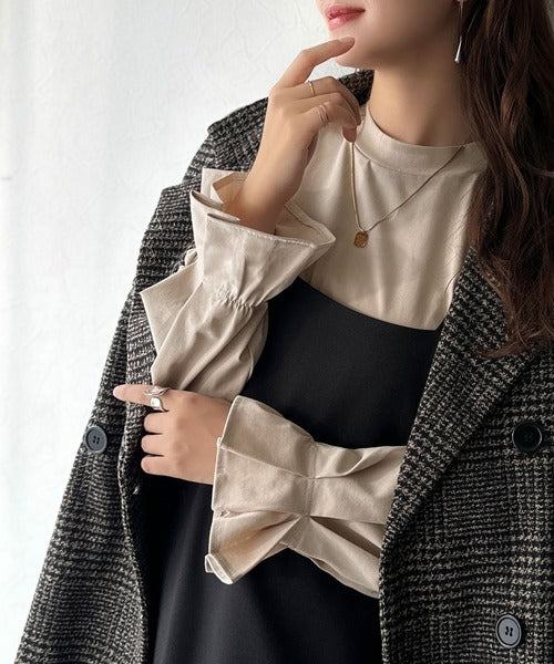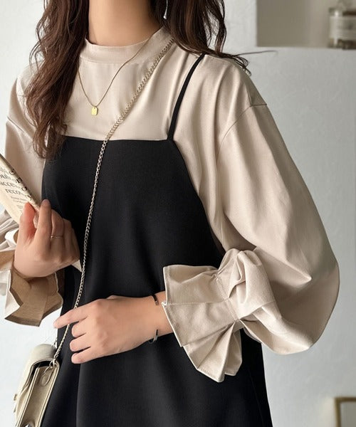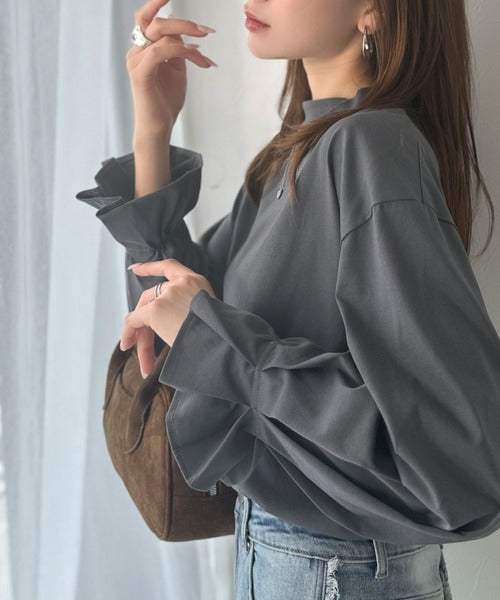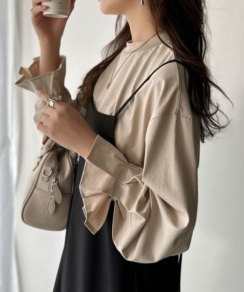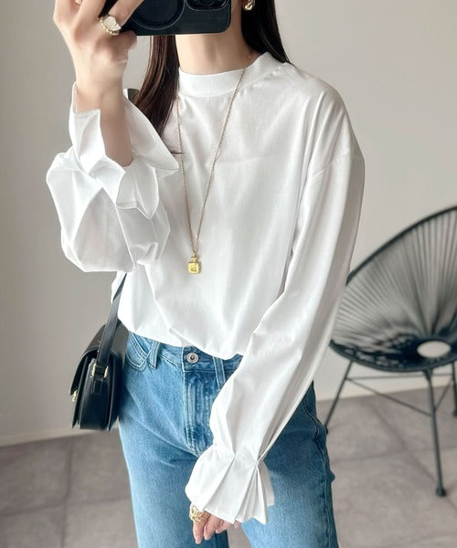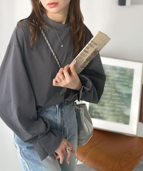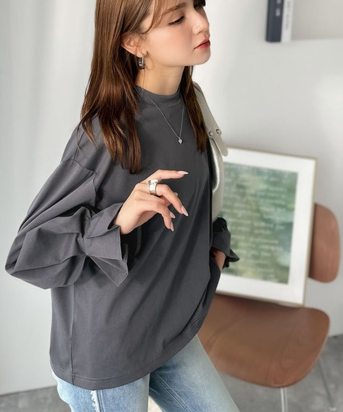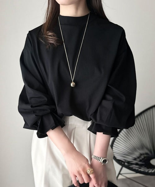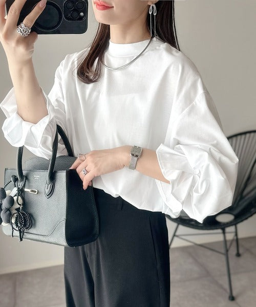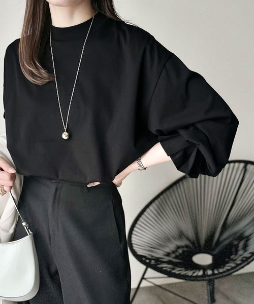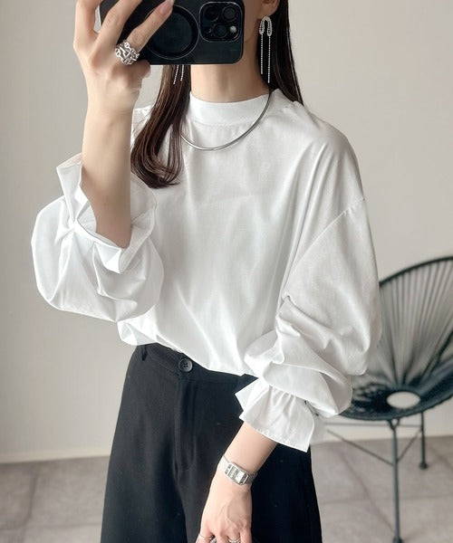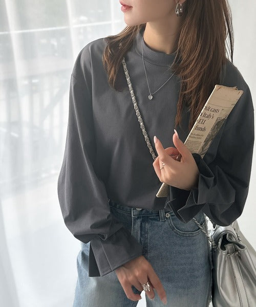 ひとさじの甘さ。微光沢仕立て、シルケット加工ハイネックキャンディスリーブTシャツ(長袖) ce1020306