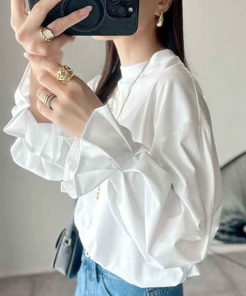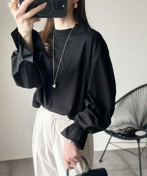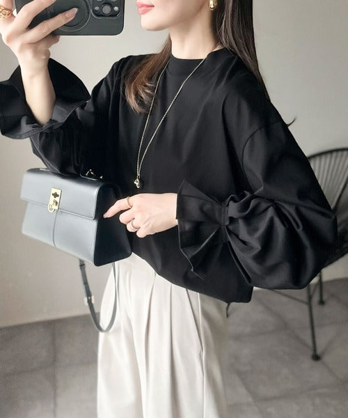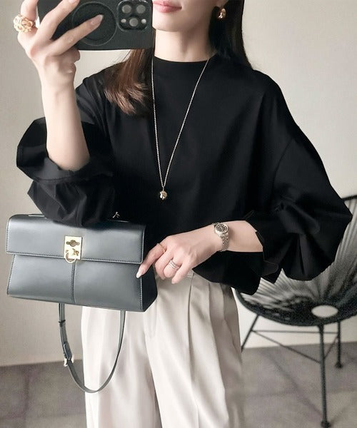 上品な光沢感と立体スリーブで、ゆったりと大人可愛く決まる1枚。