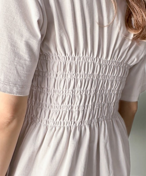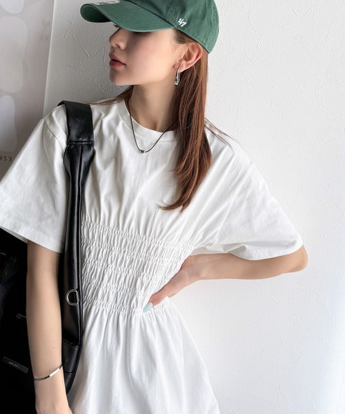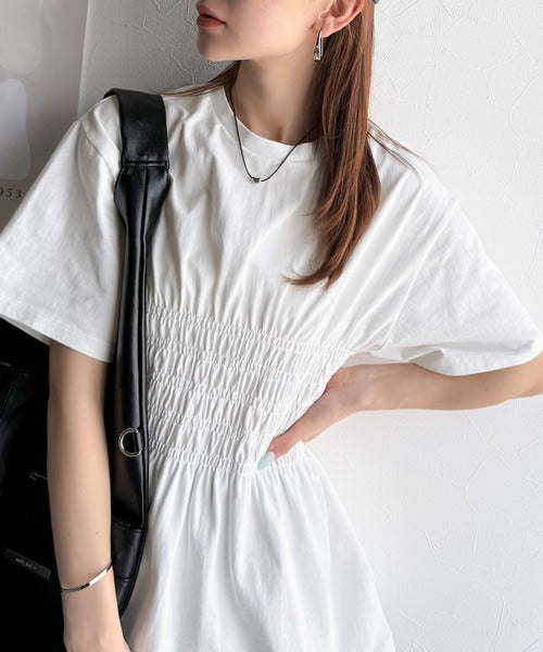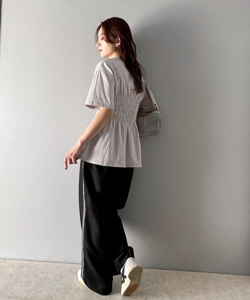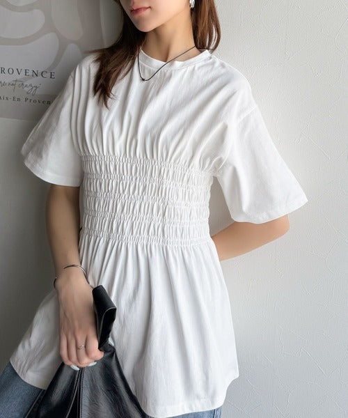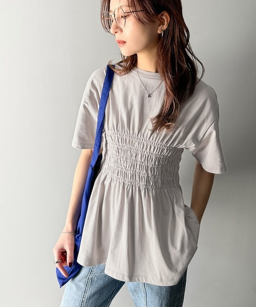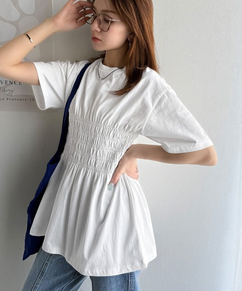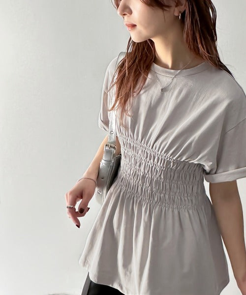 コットン100%で着心地がいいシャーリングデザインTシャツ