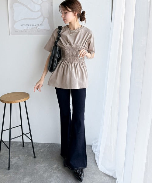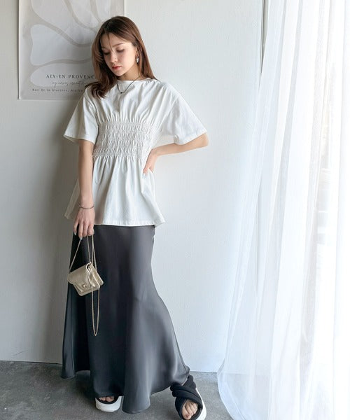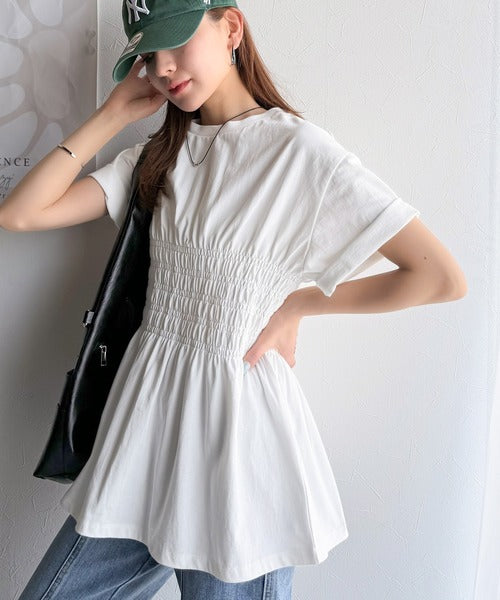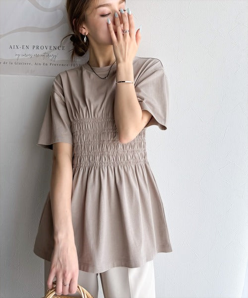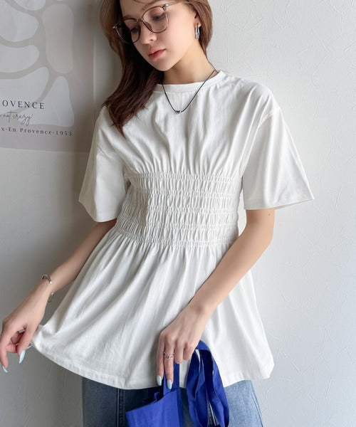 ふわっと広がるAラインで魅せる。シャーリングデザインTシャツ(半袖) ce1050298