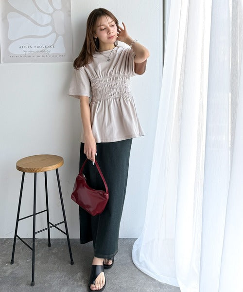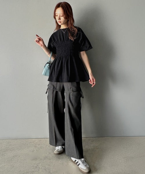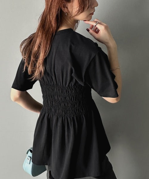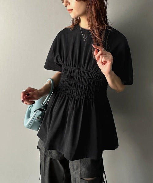 春夏シーズンの軽やかな日差しにぴったりのシャーリングデザインAライントップス。
